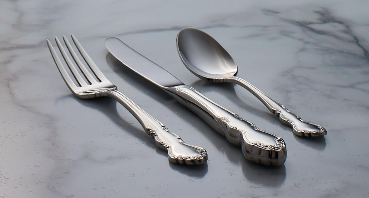 - Graceful. Fresh. Light. A traditional flatware shape with a timeless appeal, Dover blends elegance and rhythmic form for a refined, romantic design. Raised flowers and scrolls outline the brightly finished handle, delivering "old world charm".