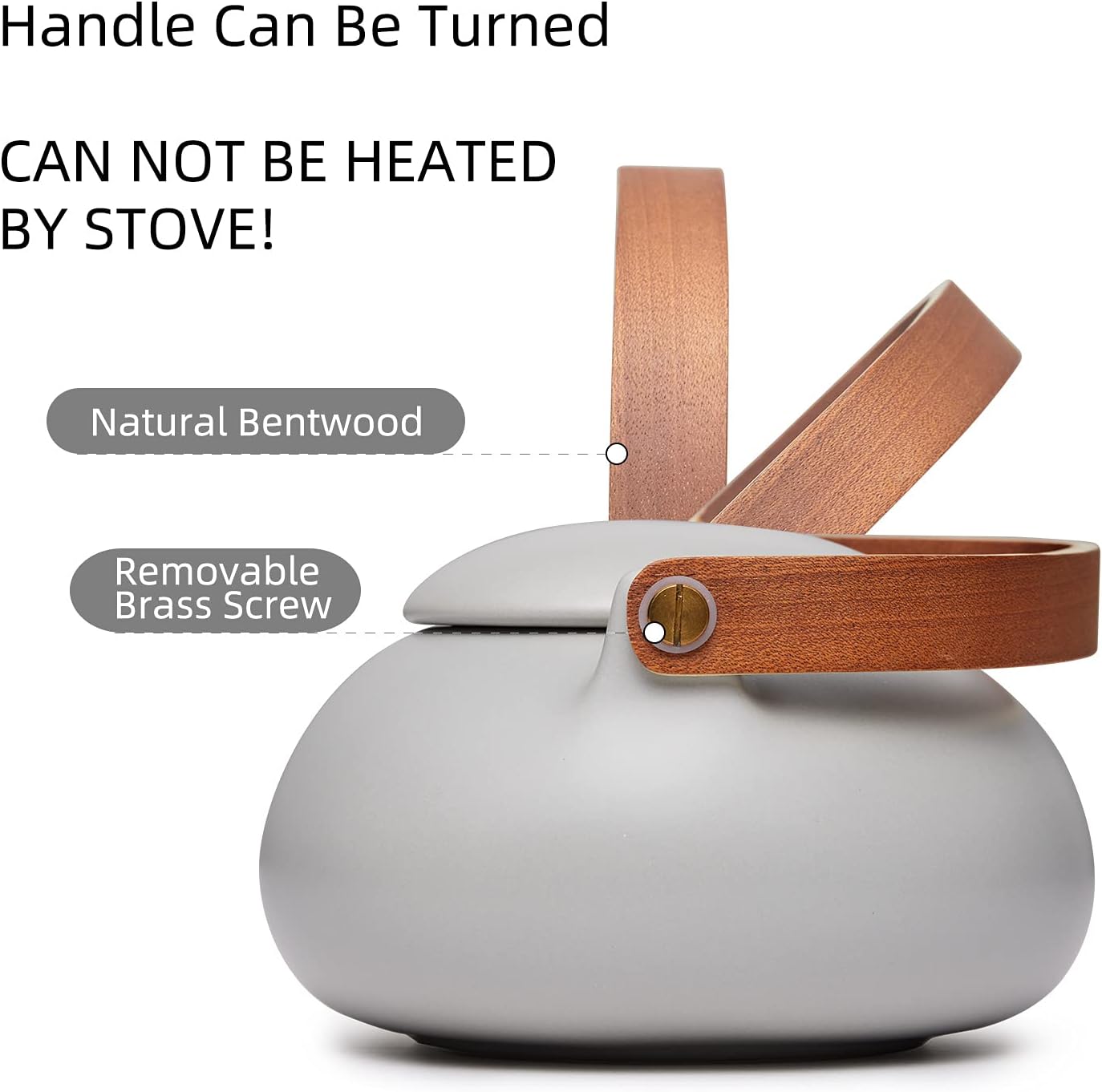 - NATURE BENTWOOD HANDLE, NO DRIPPING -The big plus of this teapot would have to be the bentwood handle that adds a vintage touch to this ceramic teapot. It can be turned 90 Β° for easy filling and easily to removed from the side screw. The tea spout is ergonomically designed so that it doesn't drip all over the place, and the 800 ml capacity and 4 cute 130ml tea cups ares perfect for 4 people to enjoy a small round of hot tea. Please tighten the copper screw on the handle before first use.