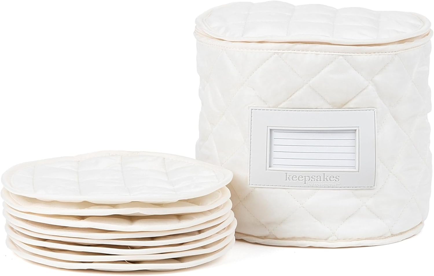 Covermates Keepsakes - Dish Storage - Padded Protection - ID Window - Stain Resistant - Machine Washable - China Storage, Cream