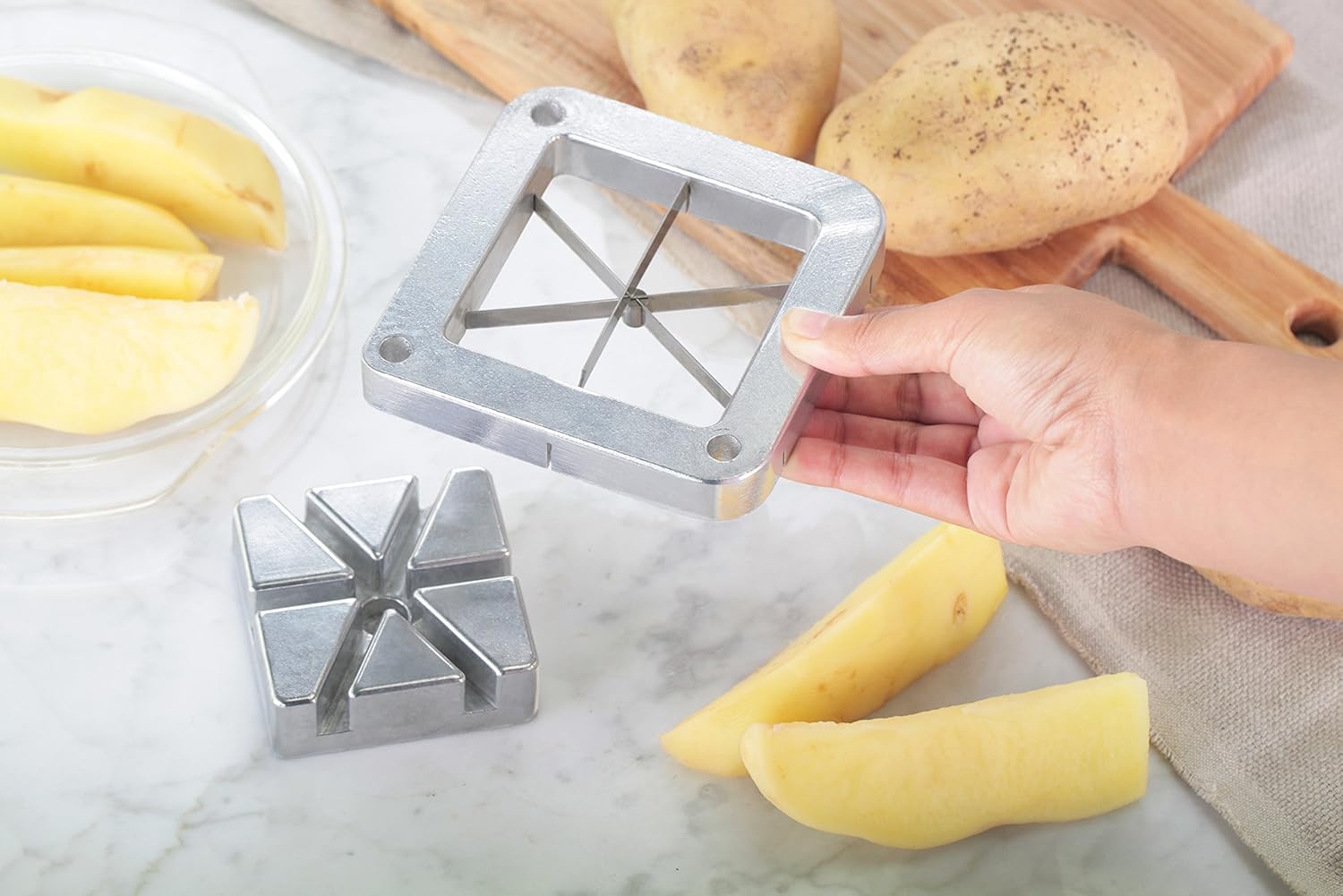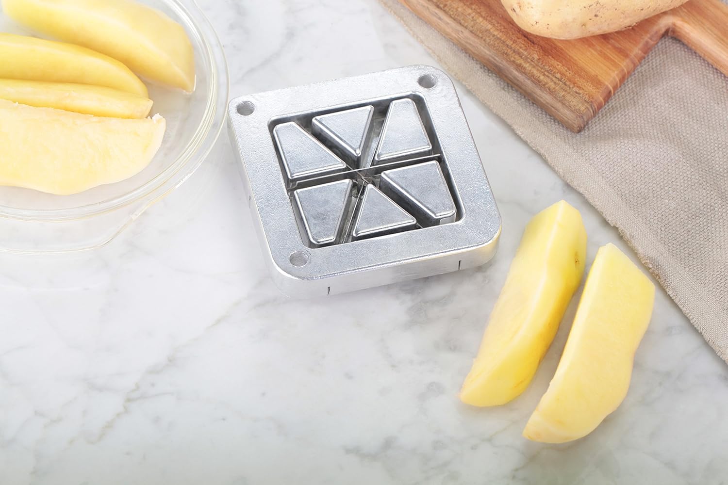 - Makes 6 wedge shaped potato pieces