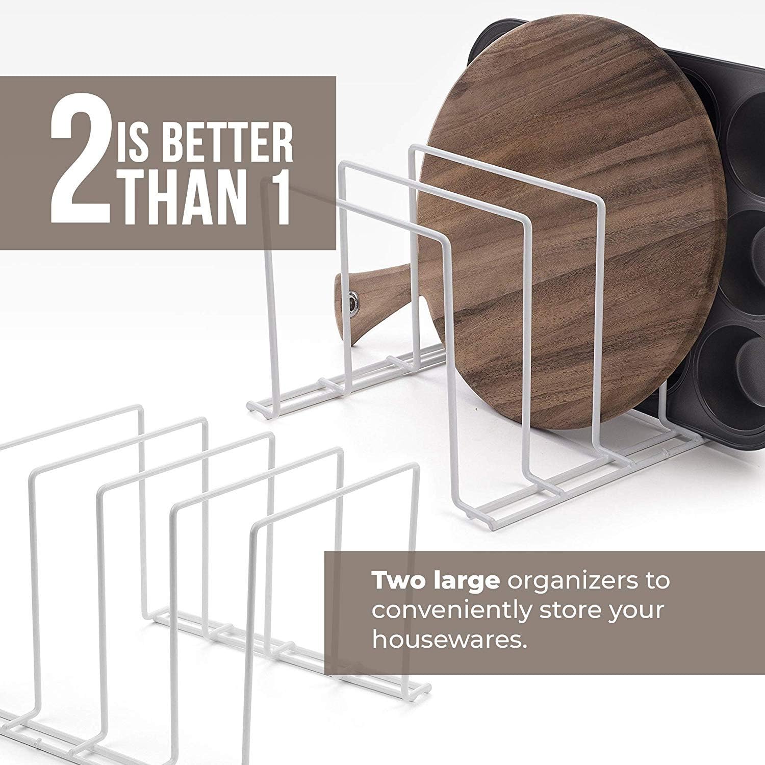 Stock Your Home White (2 Pack) Steel Baking Pan Organizer Rack for Cabinet or Counter, Holder for Kitchen Cutting Boards, Pot Lids, or Cookie Sheets - Rust Proof Wire, Drying Storage