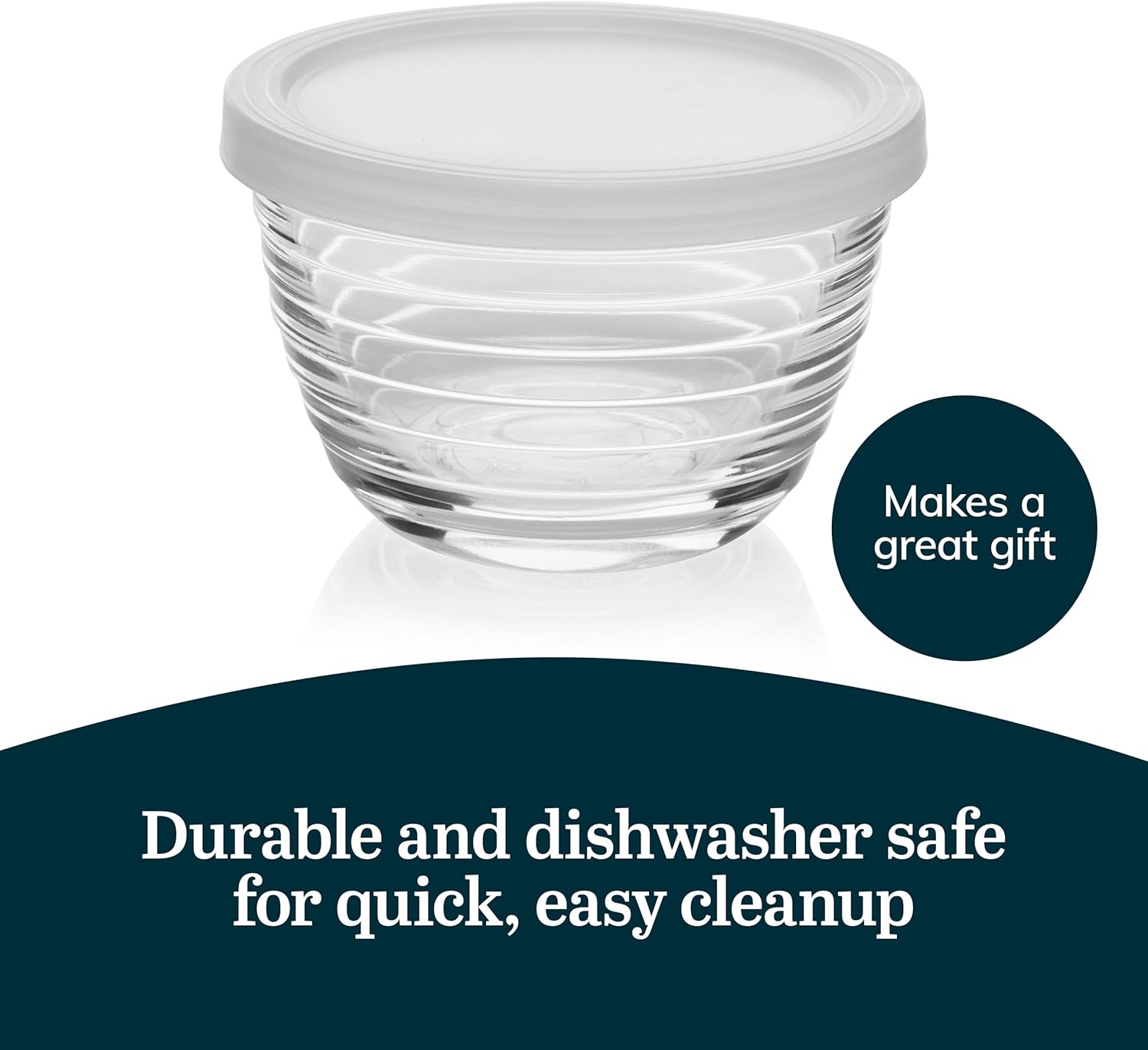 Libbey Small Glass Bowls, Glass Containers with Lids Set of 8 to Keep Leftovers Fresh, Meal Prepping and More, Dishwasher Safe Bowl Set