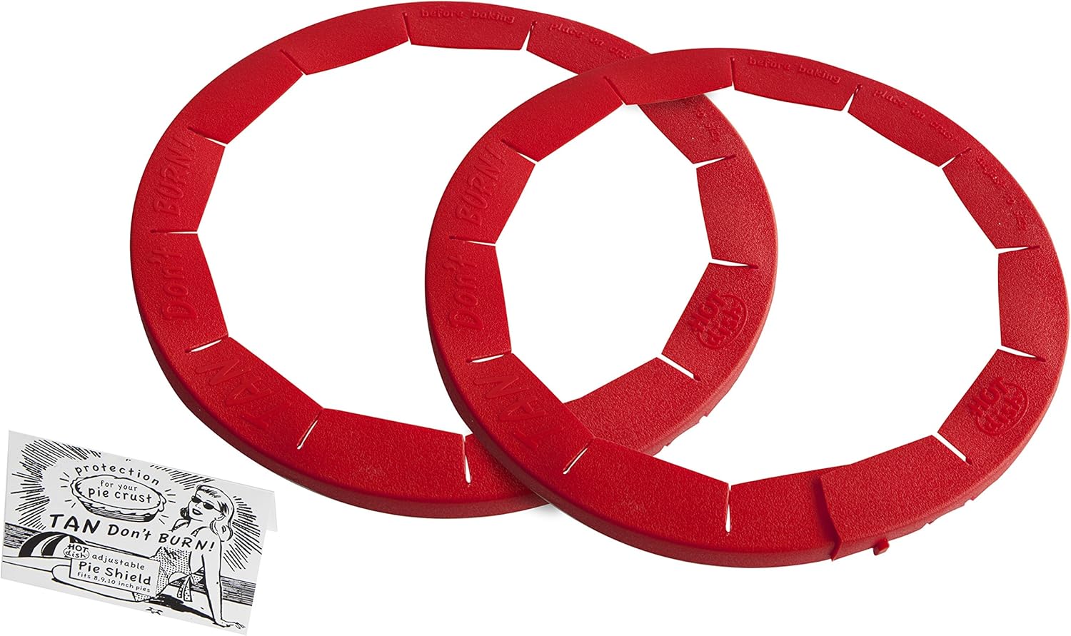 - ADJUSTABLE SILICONE PIE CRUST SHIELD: Tan, don’t burn your beautiful pie crust with the original adjustable pie crust protector by Talisman Designs that protects your pie crust while baking. The center will get a nice golden glow but the edges won’t burn.