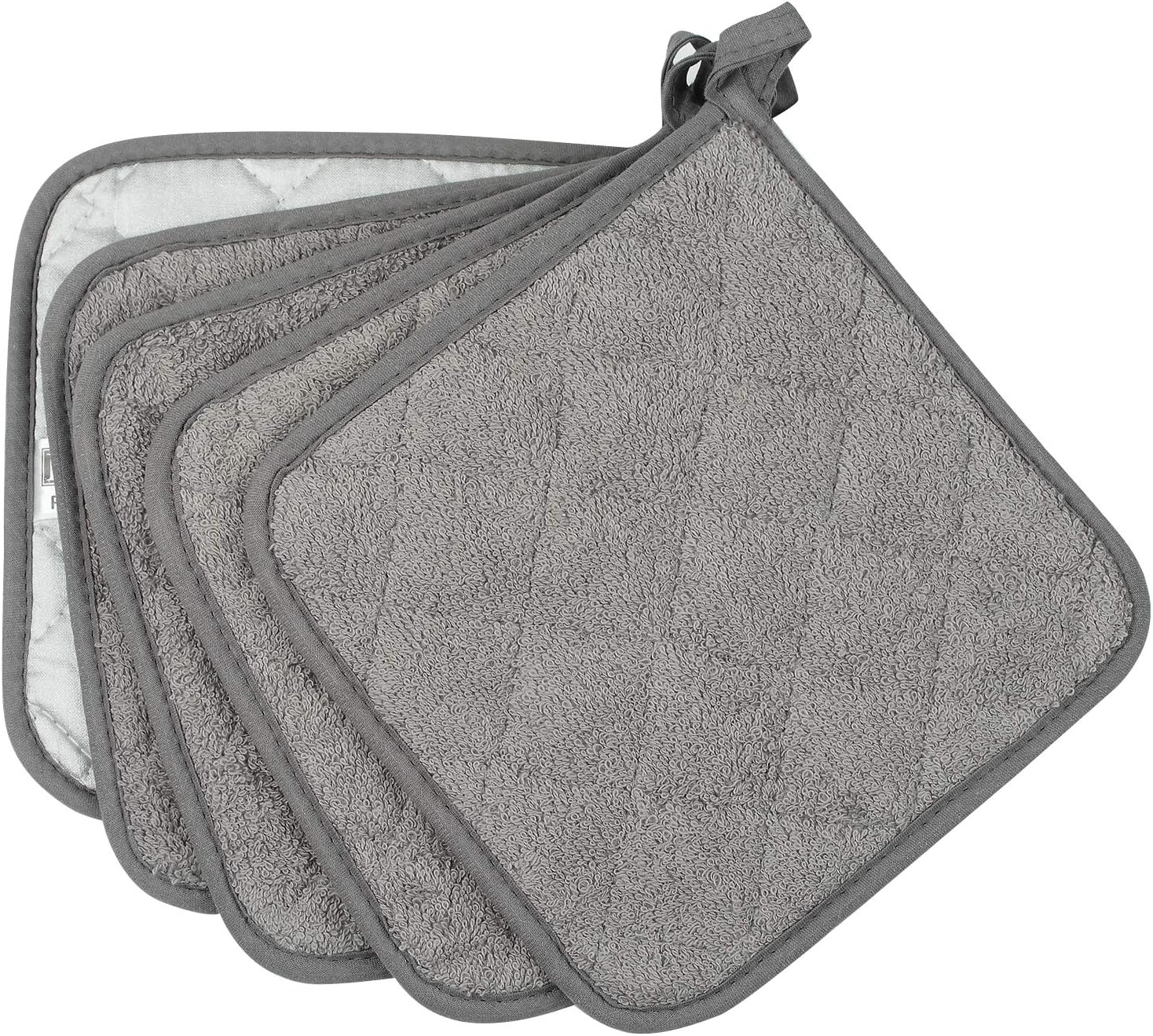 100% Cotton Kitchen Everyday Basic Terry Pot Holder Heat Resistant Coaster Potholder for Cooking and Baking Set of 5 Grey