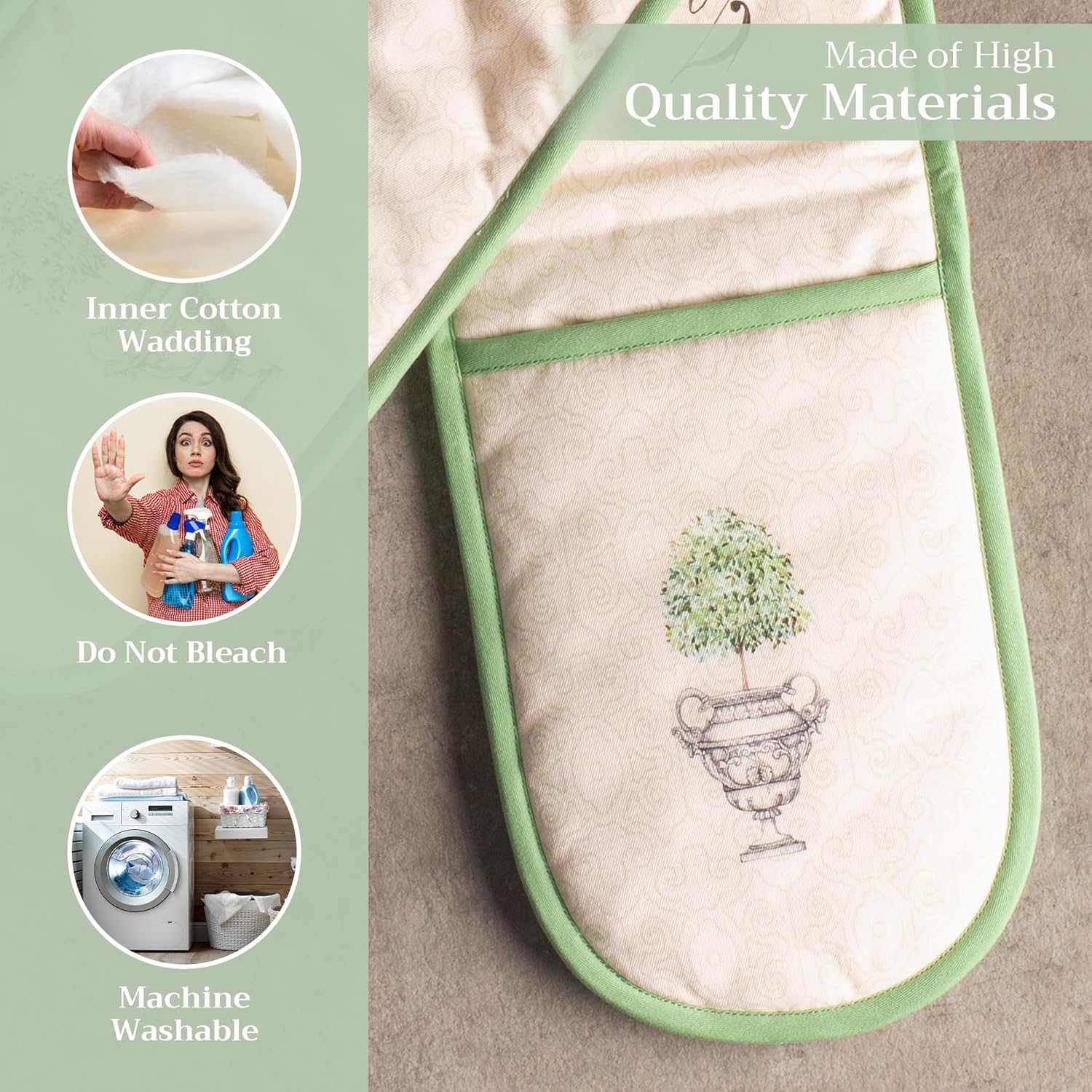 Maison d' Hermine Double Oven Mitts 100% Cotton 7"x35" Double Oven Mitt Heat Resistant BBQ Cooking Gloves with Loop, Baking, Grilling, Home, Kitchen, Handling Hot Pans Spring Summer (Jardin Du Roy)