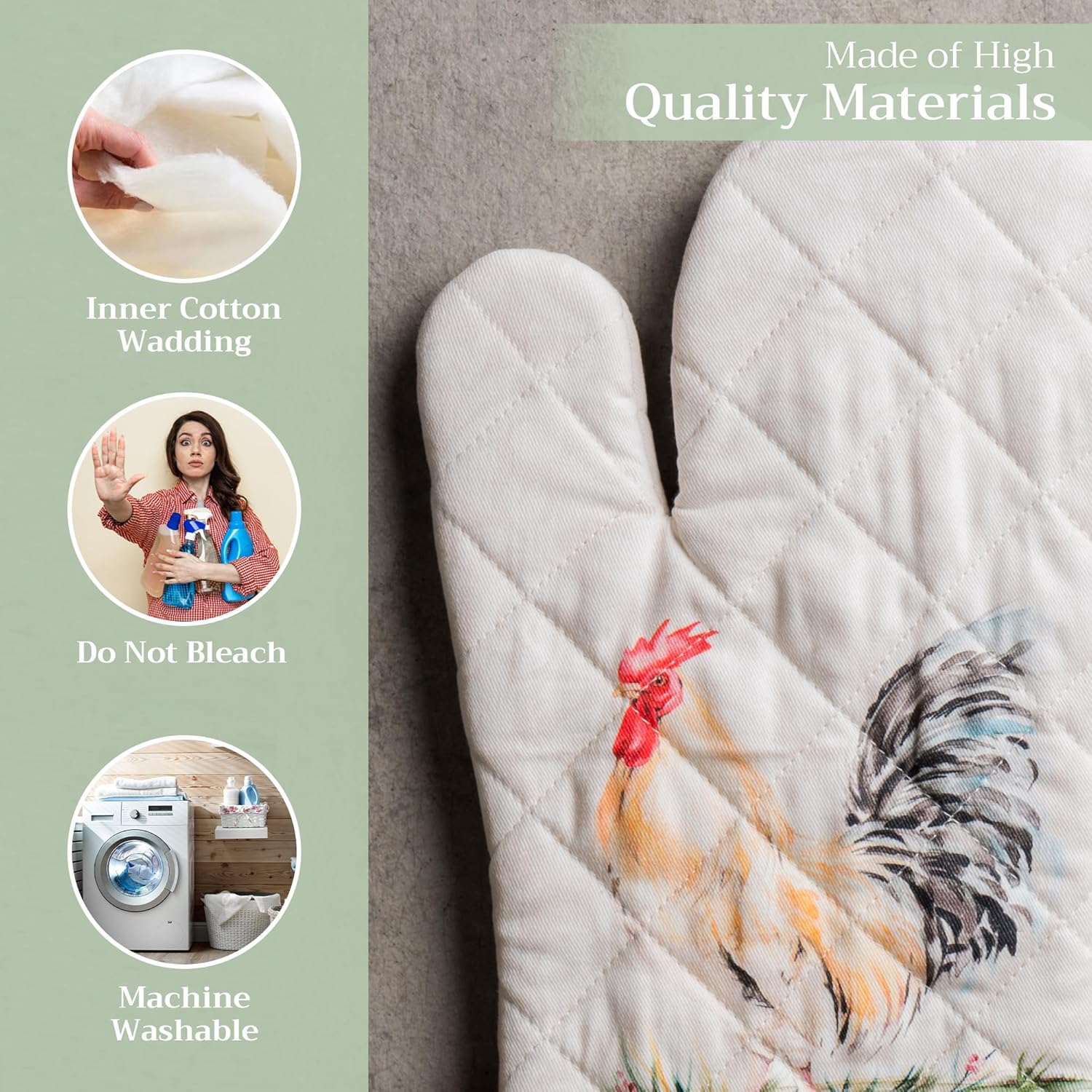 - 100% Quilted cotton: Crafted from thick, durable quilted cotton, this heat resistant oven mitt provides a soft feel, safe handling, and lasting performance. A must-have kitchen accessory for everyday cooking, roasting, or baking tasks