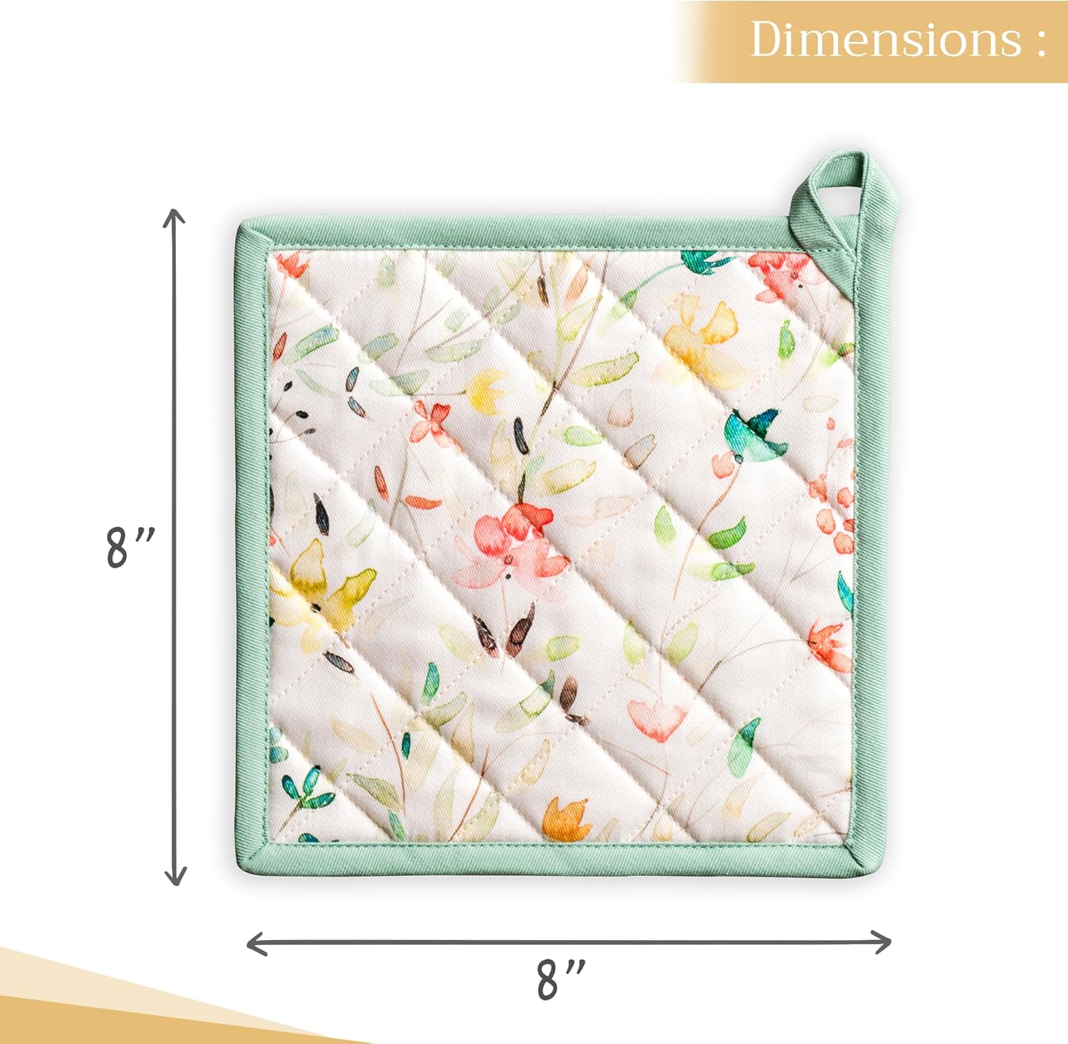 Maison d'Hermine Pot Holders 100% Cotton Heat Resistant Potholders 8" x 8" Hot Pads with Loop BBQ, Cooking, Baking, Grilling, Kitchen, Handling Hot Pans Spring/Summer (Pack of 1, Colmar)