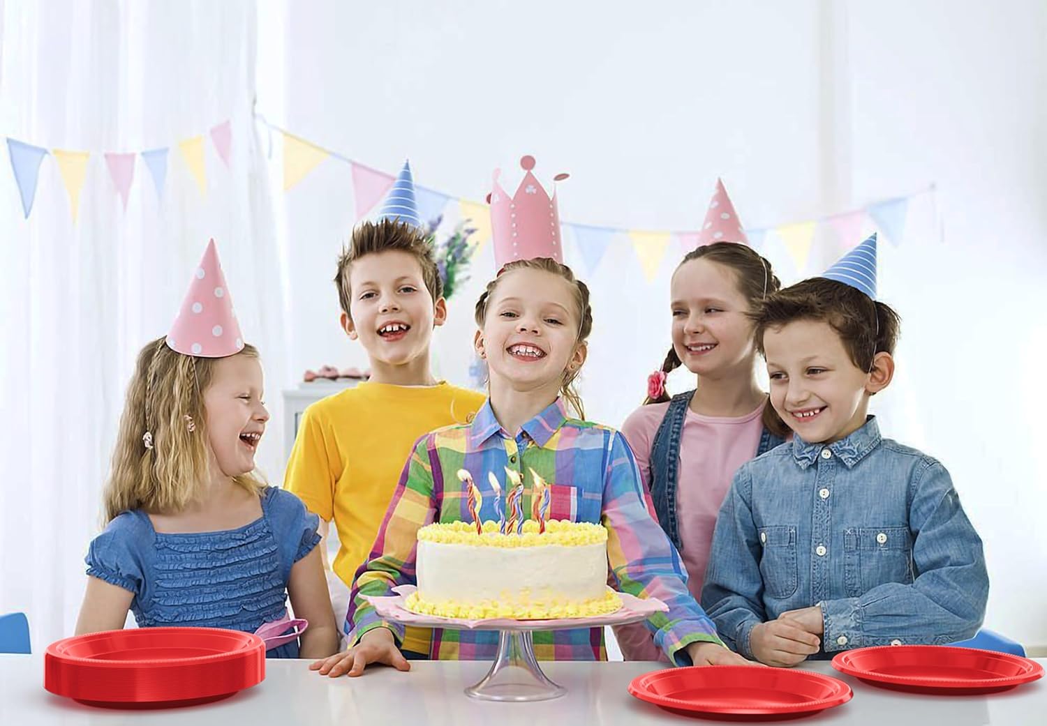 - Includes: Each pack comes with 100 Red 9 inch dinner plates. These plates may be used as dinner plates or cake plate and also make a great use as picnic supplies. Having these will complete your plastic dinnerware collection.