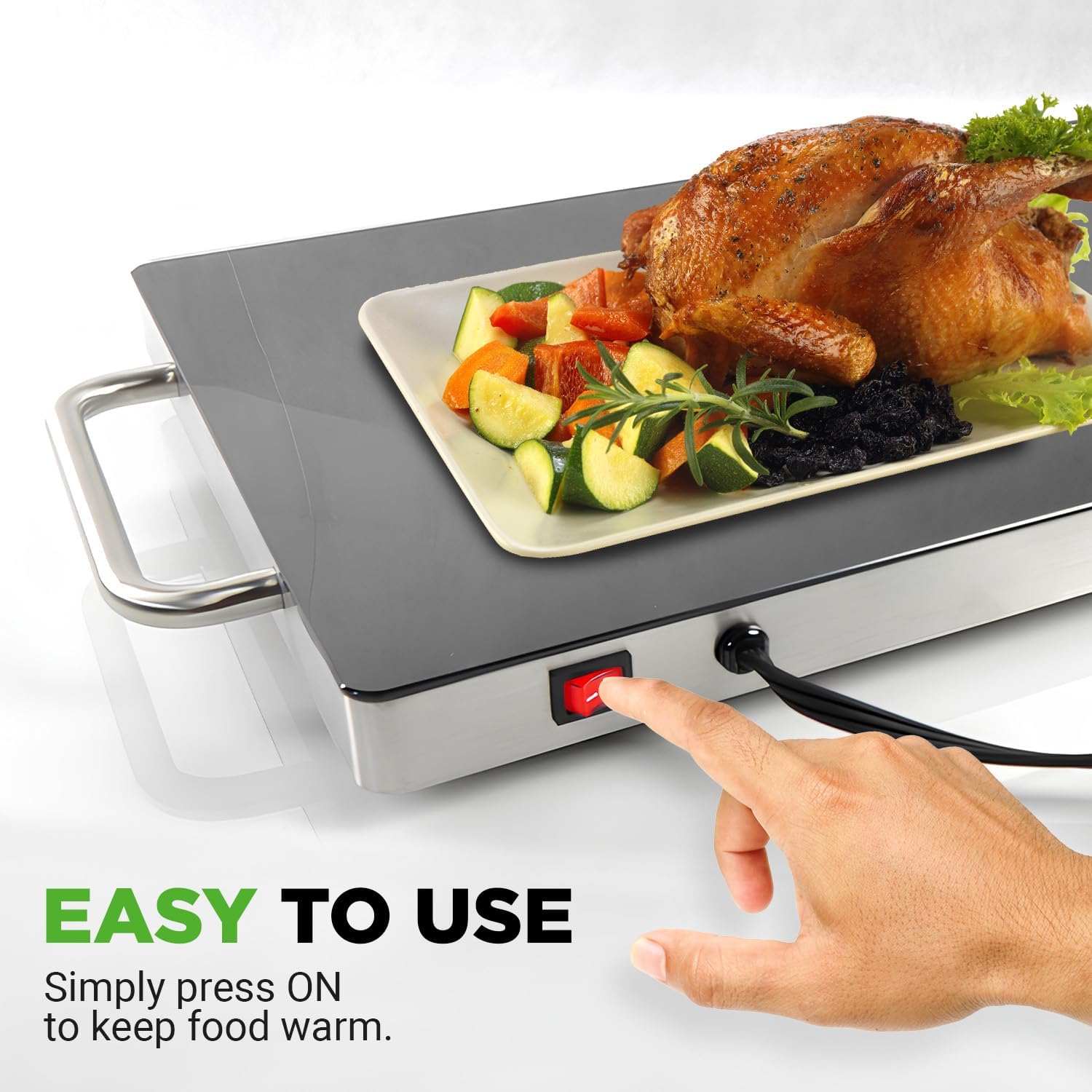 - EASY TO USE: This electric warming tray is easy to use and requires no complicated setup. Simply plug it in, turn it on, It's a convenient and practical addition to any kitchen