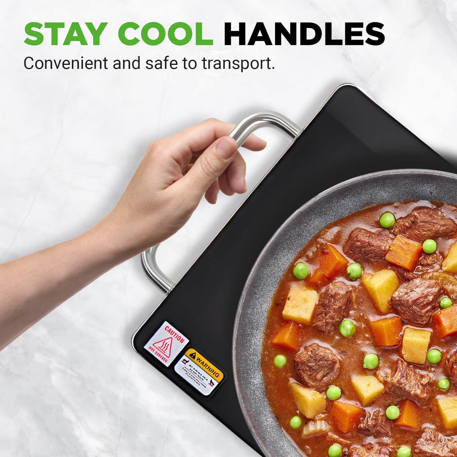 - NON-STICK TEMPERED GLASS: Features sleek stainless steel construction, space saving design, non stick and heat resistant tempered glass surface w/ 14.5'' L x 8.6'' W heating tray size and an easy to clean surface