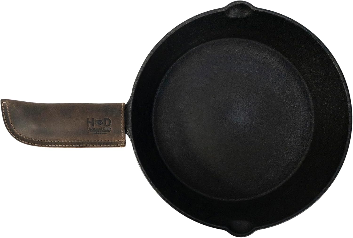 - DURABLE DOUBLE LEATHER LAYER OFFERS PROTECTION UP TO 450-DEGREES: The double layered leather provides excellent insulation to prevent any burns as you take the Skillet off the fire, giving you a protection against high temperatures. Note that these Rustic Leather Pan handles are designed for levels of heat-proofing, they are not fireproof β do not place in the oven.
