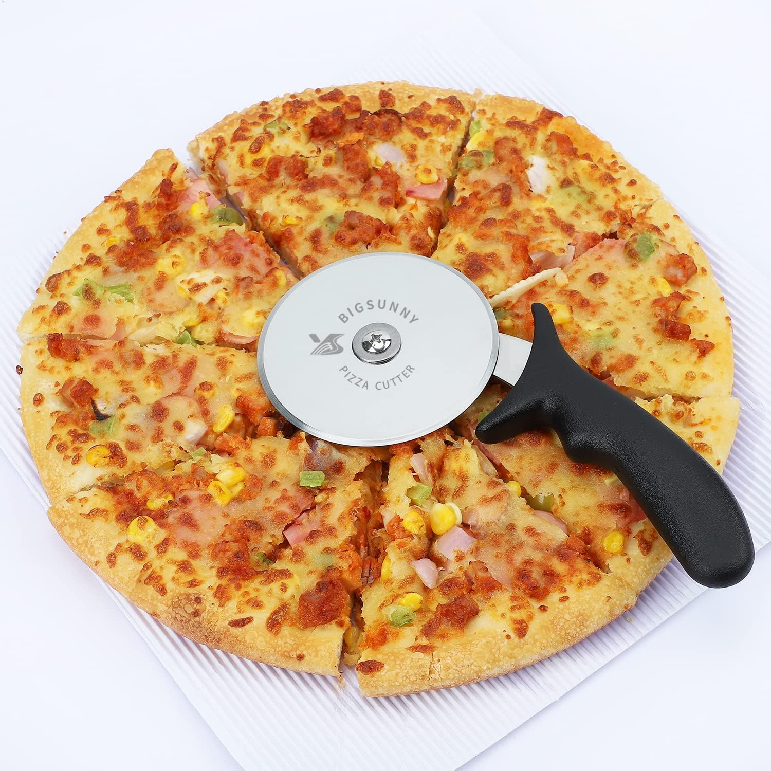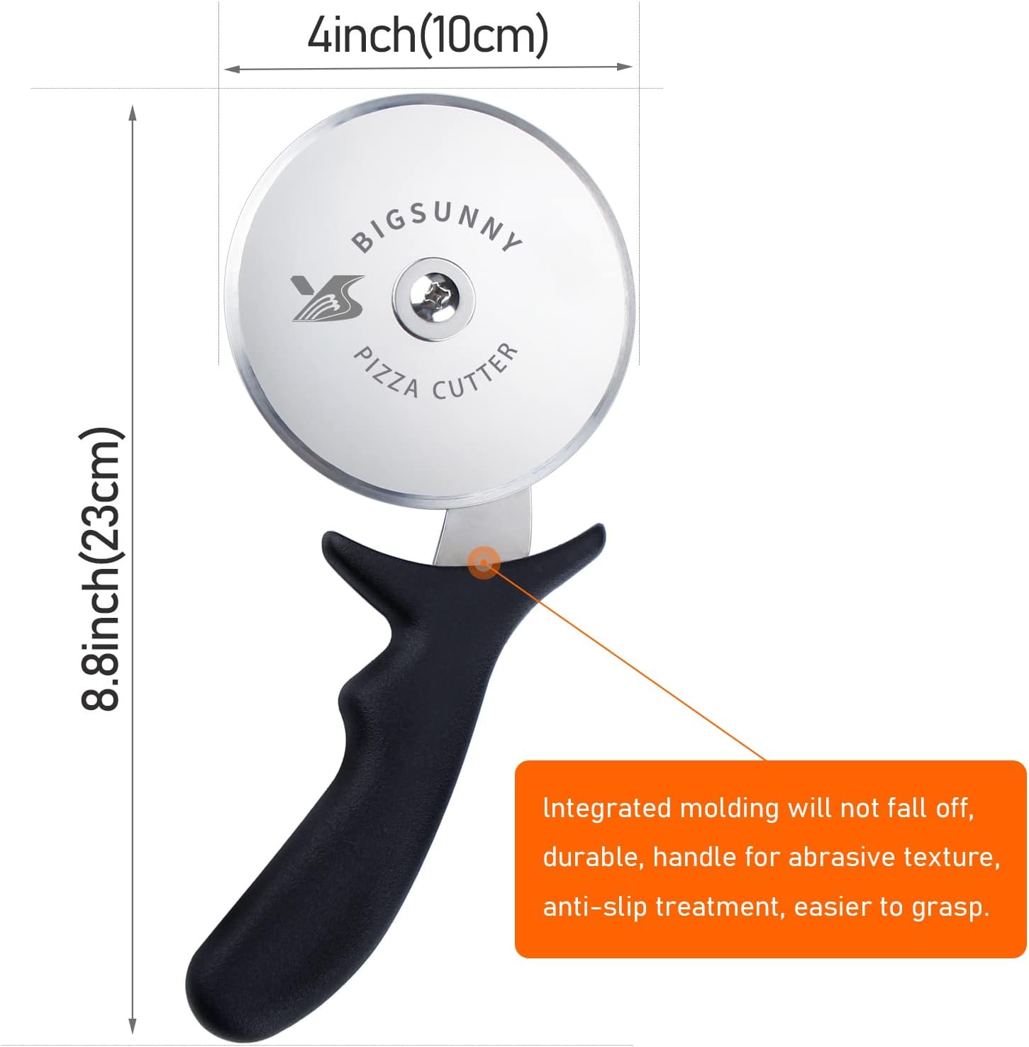 - Ergonomic design - 4" Large Wheel, Sharp and Never Stucked - The 4" wheel blade can be used to cut pizza, lasagna, pastry even thick-crust pizza
