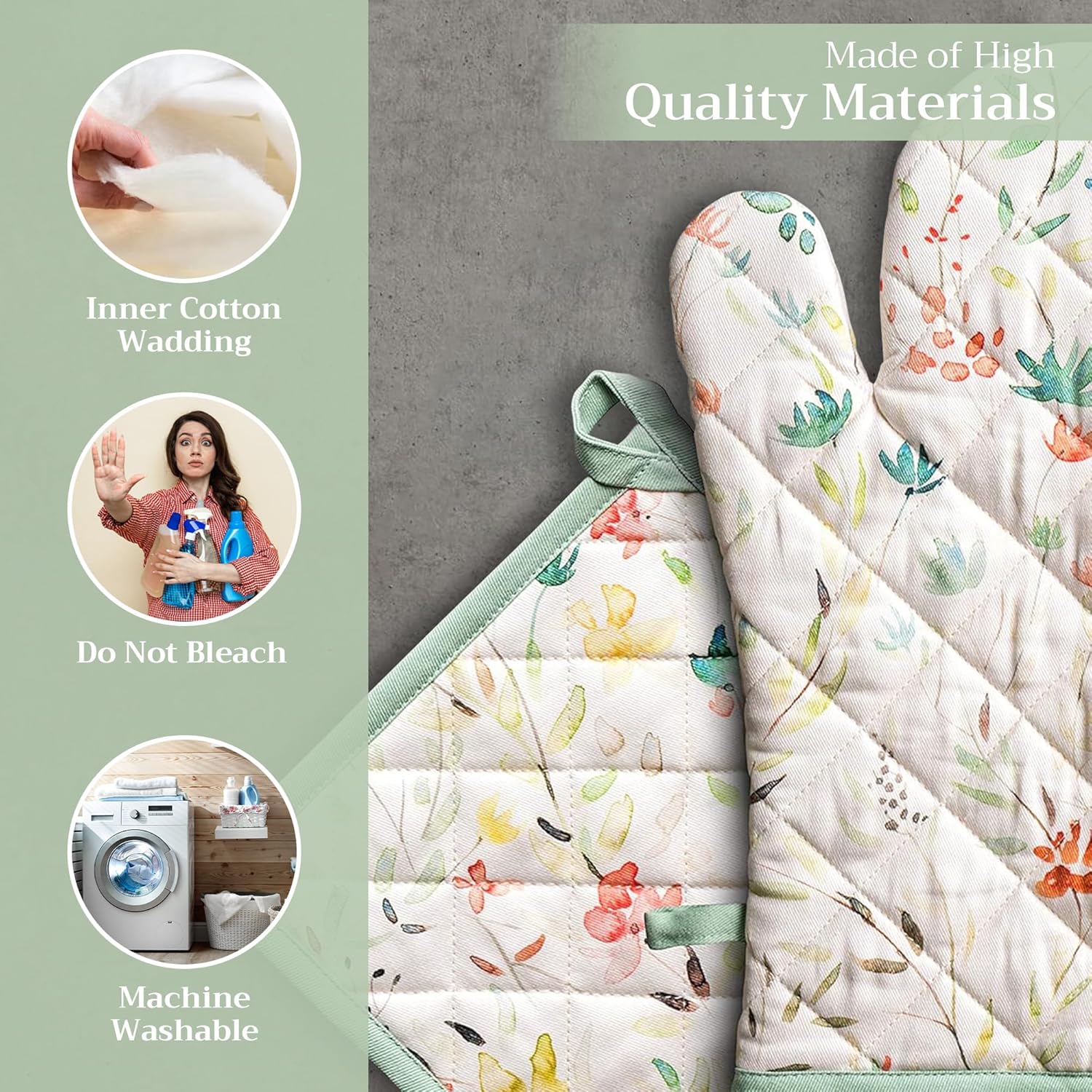 - Premium Quality: Crafted from quilted 100% cotton, this heat resistant oven mitt and pot holder set offers comfort, flexibility, and protection from hot cookware. Ideal cotton oven mitts for daily kitchen use and cooking safety