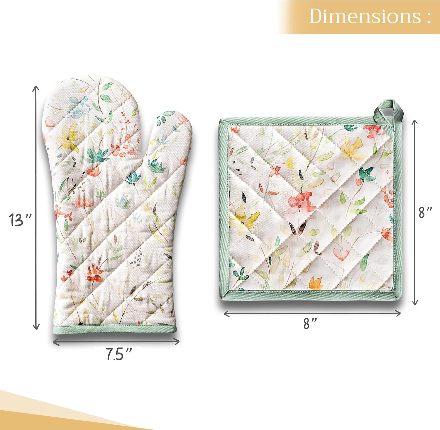 - Artistic style: Add charm to your kitchen with our oven mitt pot holder set featuring watercolor designs inspired by traditional European motifs. Stylish and functional kitchen accessories for every home cook or gift occasion.