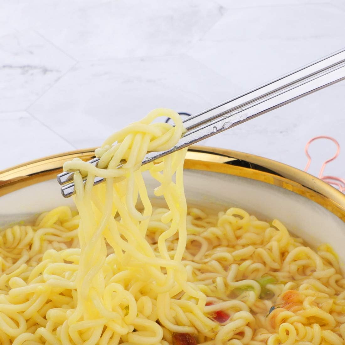 Buyer Star 5-Pair Silver Stainless Steel Chopsticks - Reusable Chinese Square Chopsticks