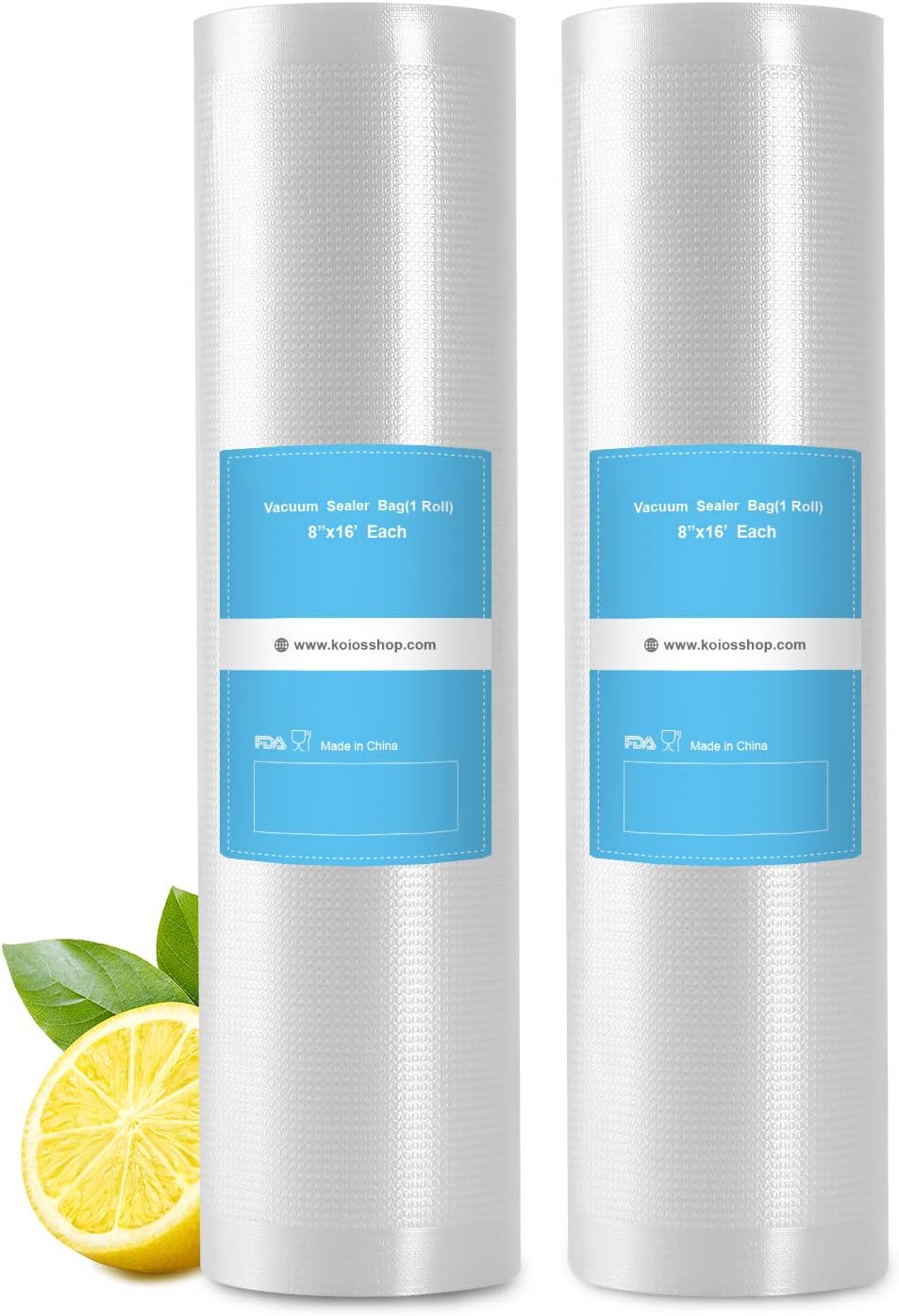KOIOS Vacuum Sealer Bags for Food Vacuum Sealer Bags Rolls,8" x 16' Food Vacuum Rolls, Non-BPA Vacuum StorageBags for Food or Sous Vide, Seal a Meal, Heavy Duty (2 Rolls)