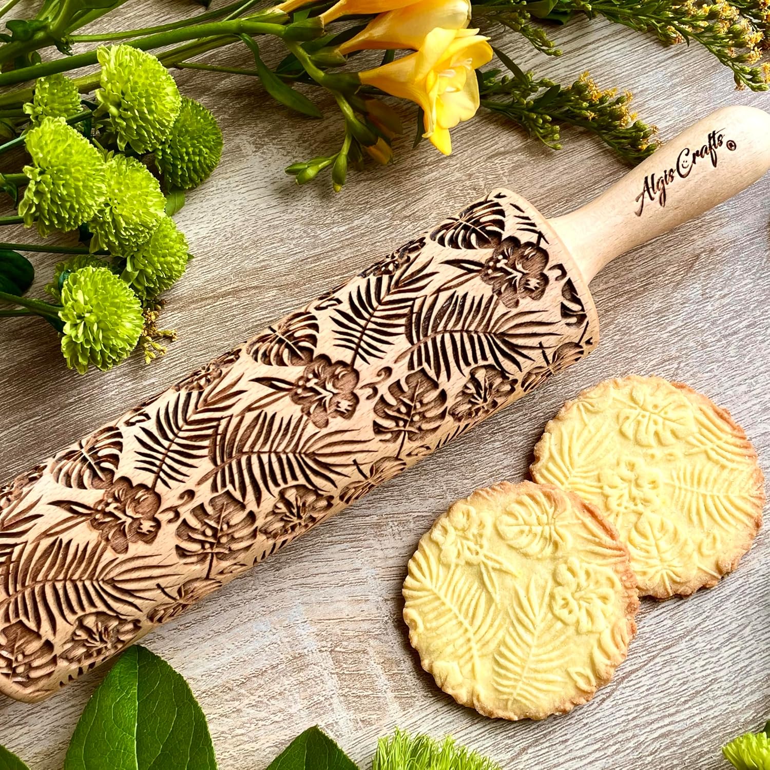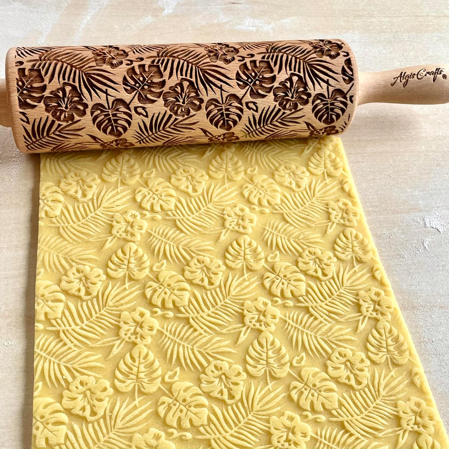 RAINFOREST embossing rolling pin with Tropical Pattern. Dough roller for embossed cookies and Pottery by Algis Crafts