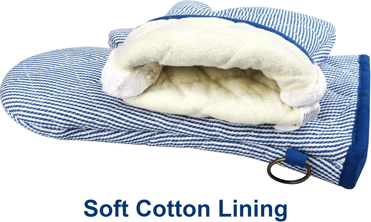 1 Pair Yarn Dyed Oven Mitts 100% Cotton Heat Resistant 470 Degree Gloves Men Women Cooking Baking Barbecue BBQ Microwave Crafting Machine Washable Pot Holders Mittens (blue2)