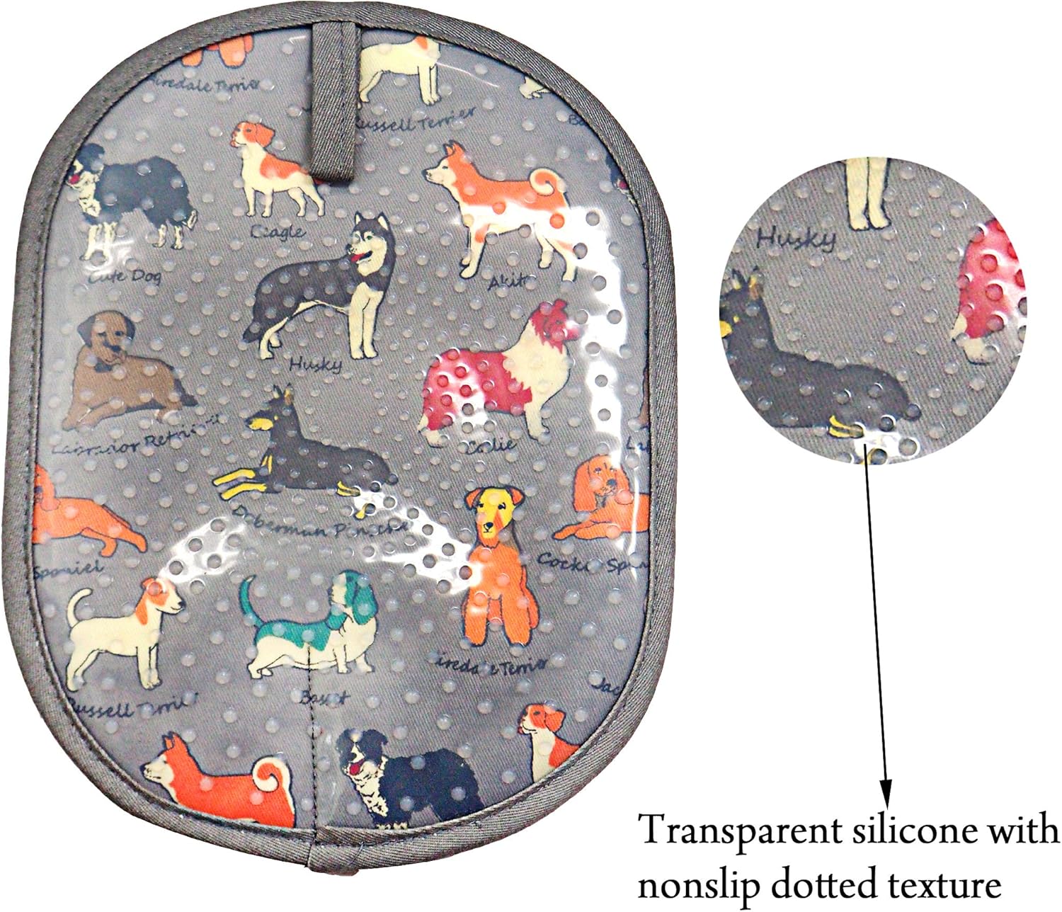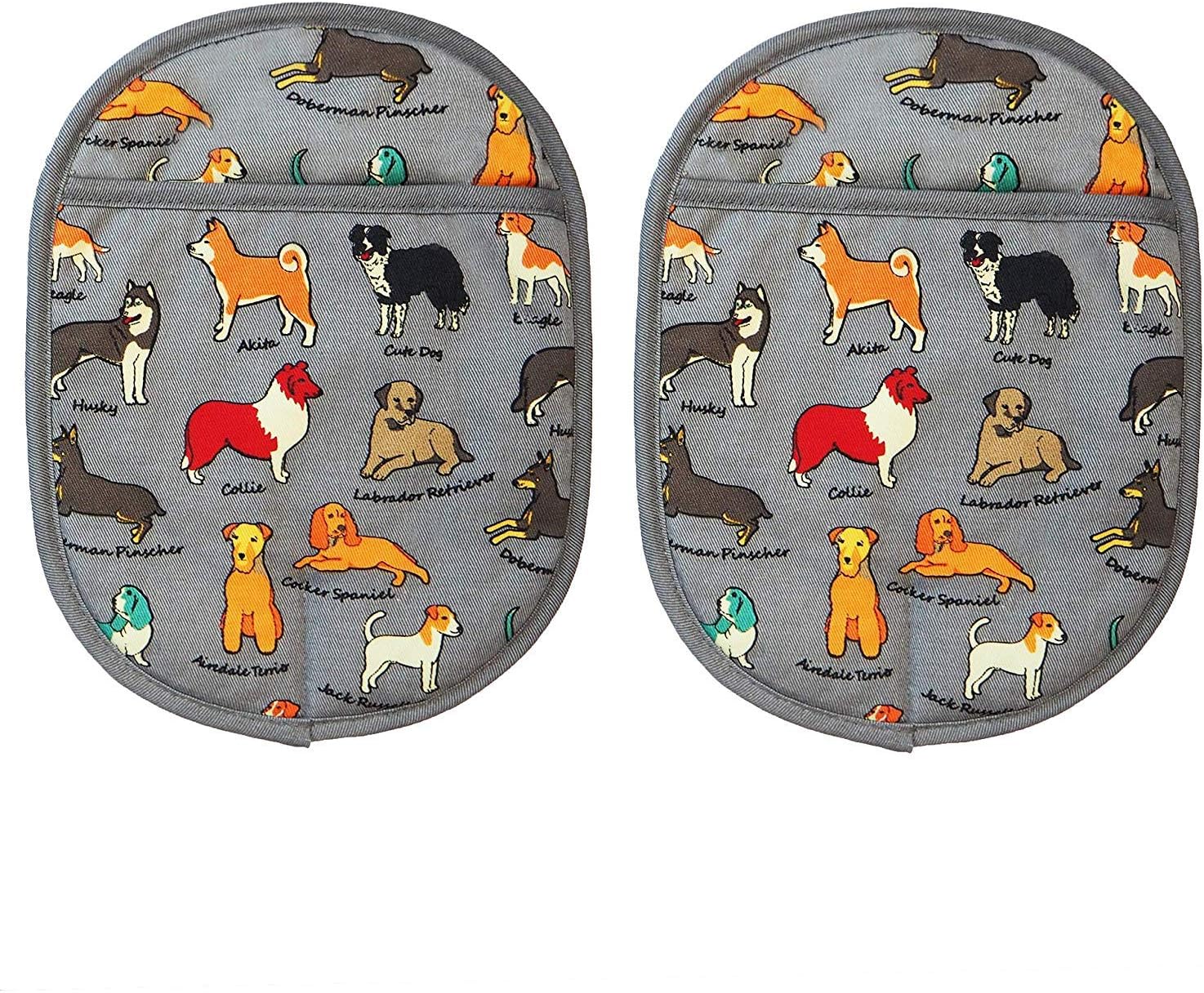 Pot Holders Set of 2 with Transparent Clear Silicone Shell and Nice Dog Printing Cotton Lining, Heat Resistant to 500 F Kitchen Oven Gloves Pot Holder for Cooking (Dog Flower, Potholders)