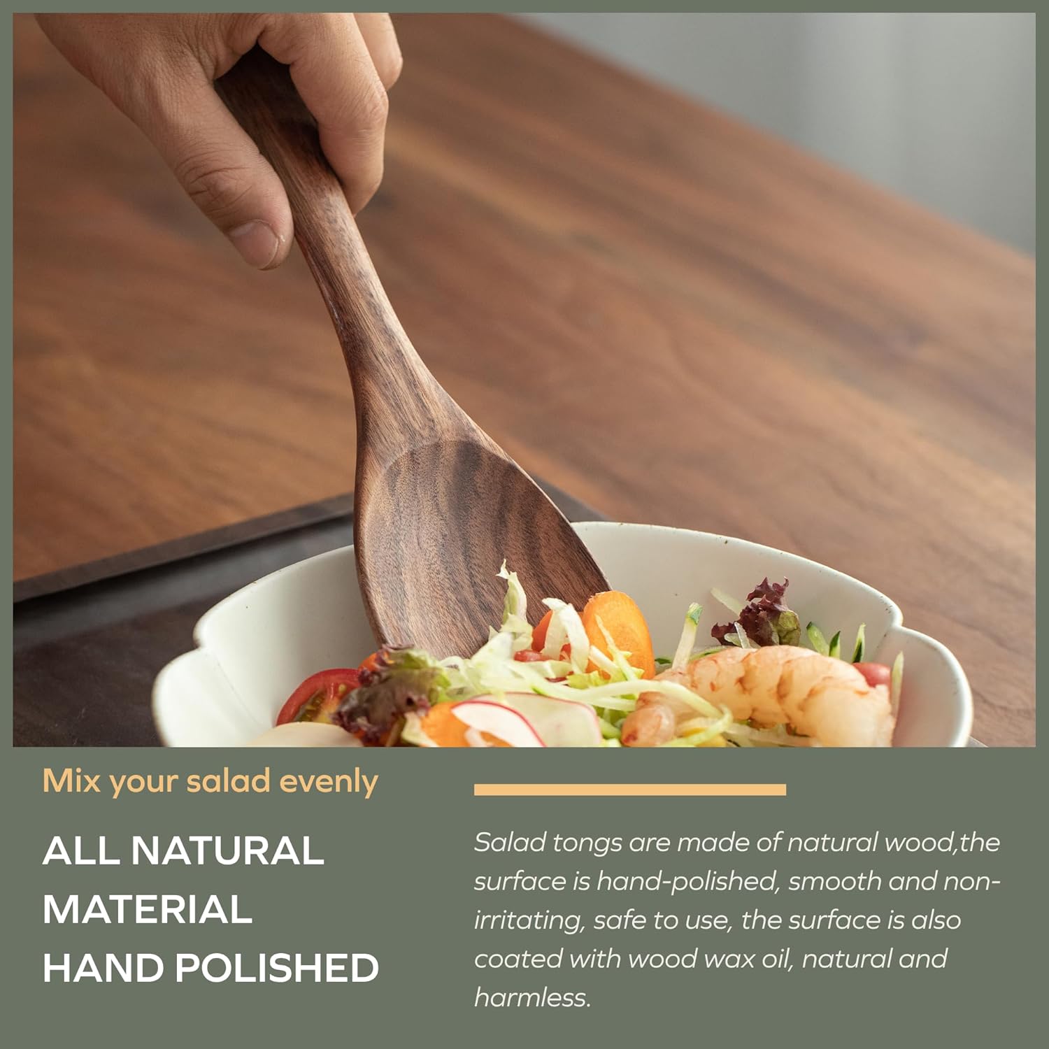 - ALL NATURAL MATERIAL, HAND POLISHED - Made from natural wood, the salad tongs has a hand polished surface that is smooth and non-irritating, making it safe to use; in addition, the surface has been rubbed with wood wax oil, making it naturally harmless; furthermore, the weight and thickness are moderate.