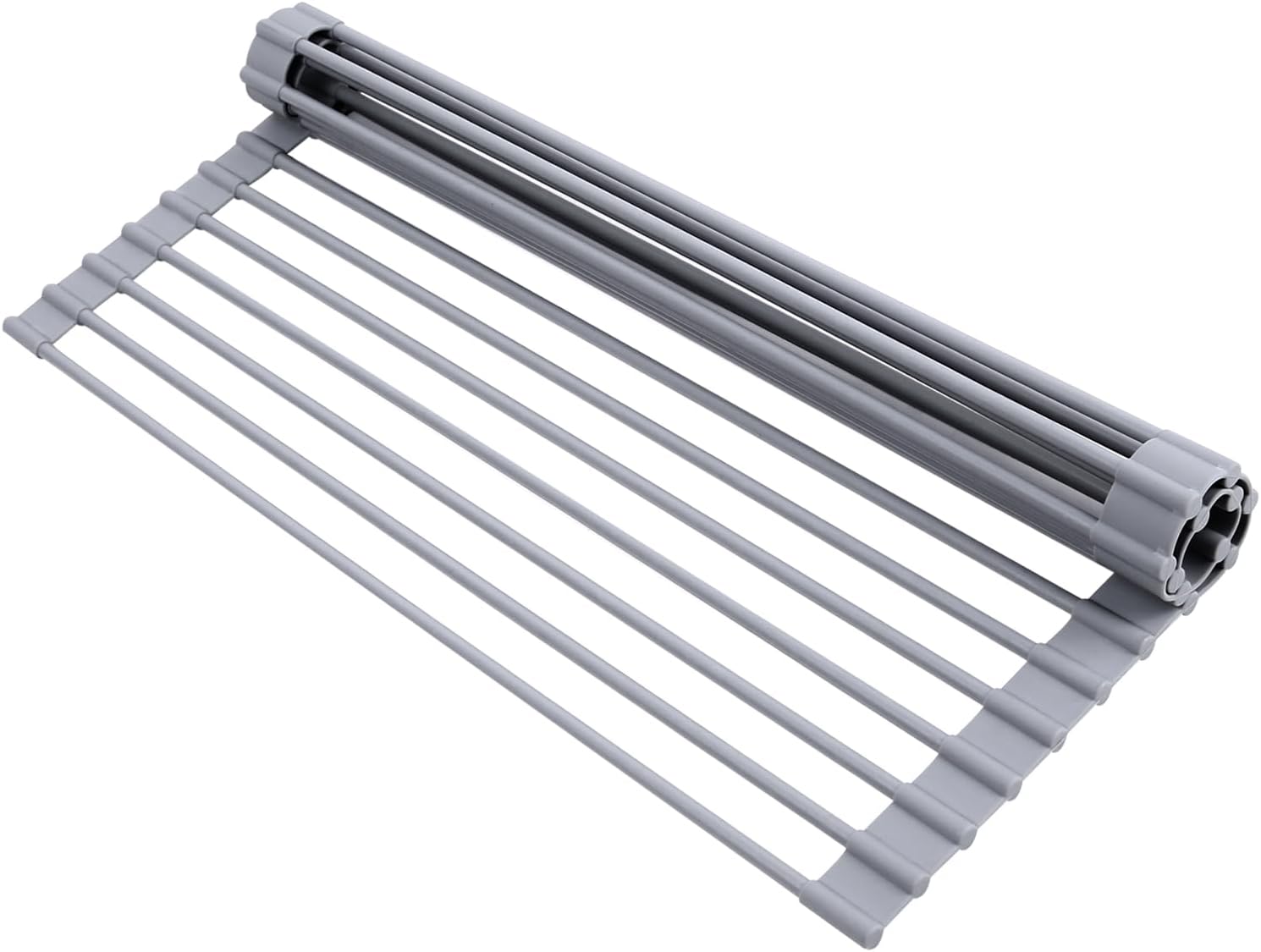 Ohuhu Roll Up Dish Drying Rack, Over The Sink Multipurpose Roll-Up Dish Racks, 16.5" W x 13" L Rolling Heat-Resistant Anti-Slip Silicone Coated Dish Drainer Portable Foldable for Kitchen Counter