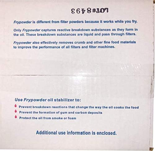 - REDUCE COSTS & EXTEND FRYER OIL LIFE β FryPowder Oil Stabilizer & Filter Aid is the ultimate solution for lowering frying expenses while delivering superior food quality. Compatible with all fryer filter machines, this powerful formula reduces oil absorption in food, prevents oil breakdown, and extends oil lifeβsaving you 25% to 40% on cooking oil costs. By maintaining oil clarity, heat stability, and frying efficiency, it allows more fry cycles per batch and produces consistently crisp, golden-brown results. Perfect for restaurants.