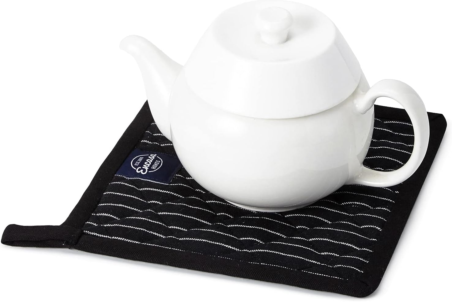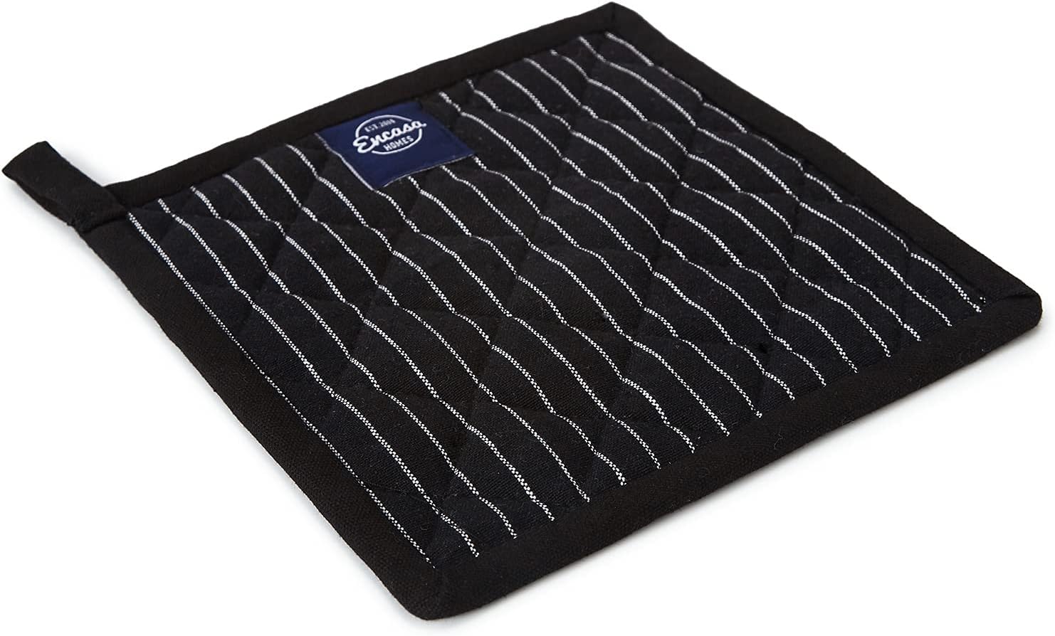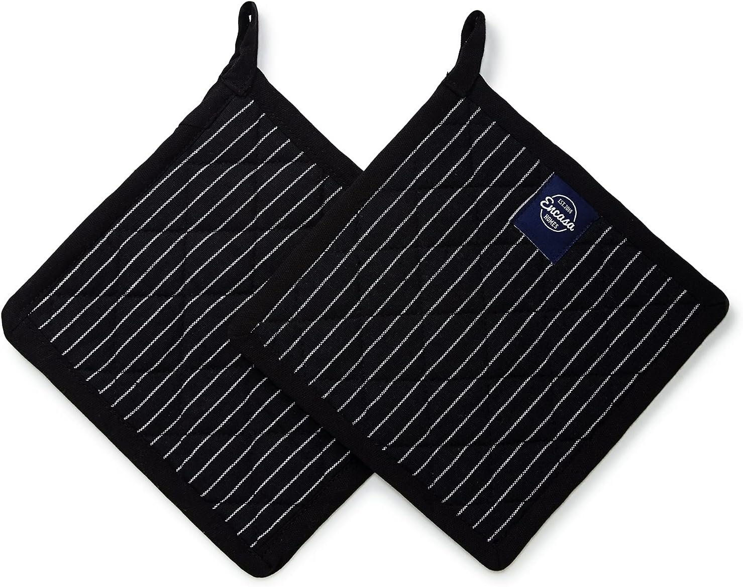 Encasa Homes 8 inches Oven Microwave Potholders (2 pc Set) for Kitchen Cooking & Baking - Heat Resistant, Thick & Safe, Protection of Hands from Hot Utensils - Butcher Stripes Black