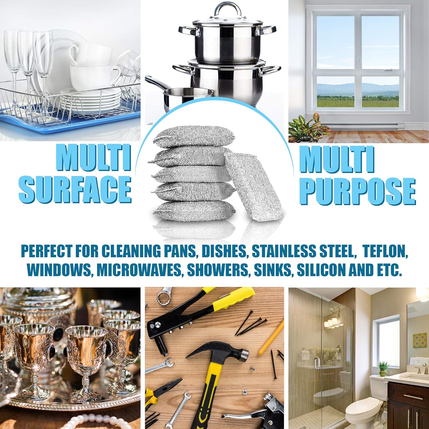 - CLEAN ANY ITEM AND SURFACE: You can use these truly multipurpose dish sponges to clean many different kinds of items, materials and surfaces, including pans, dishes, silverware, plastic ware, Teflon, windows, microwaves, ovens, cars, wood, china dishes, copper, showers, sinks, guns, shoes and more.
