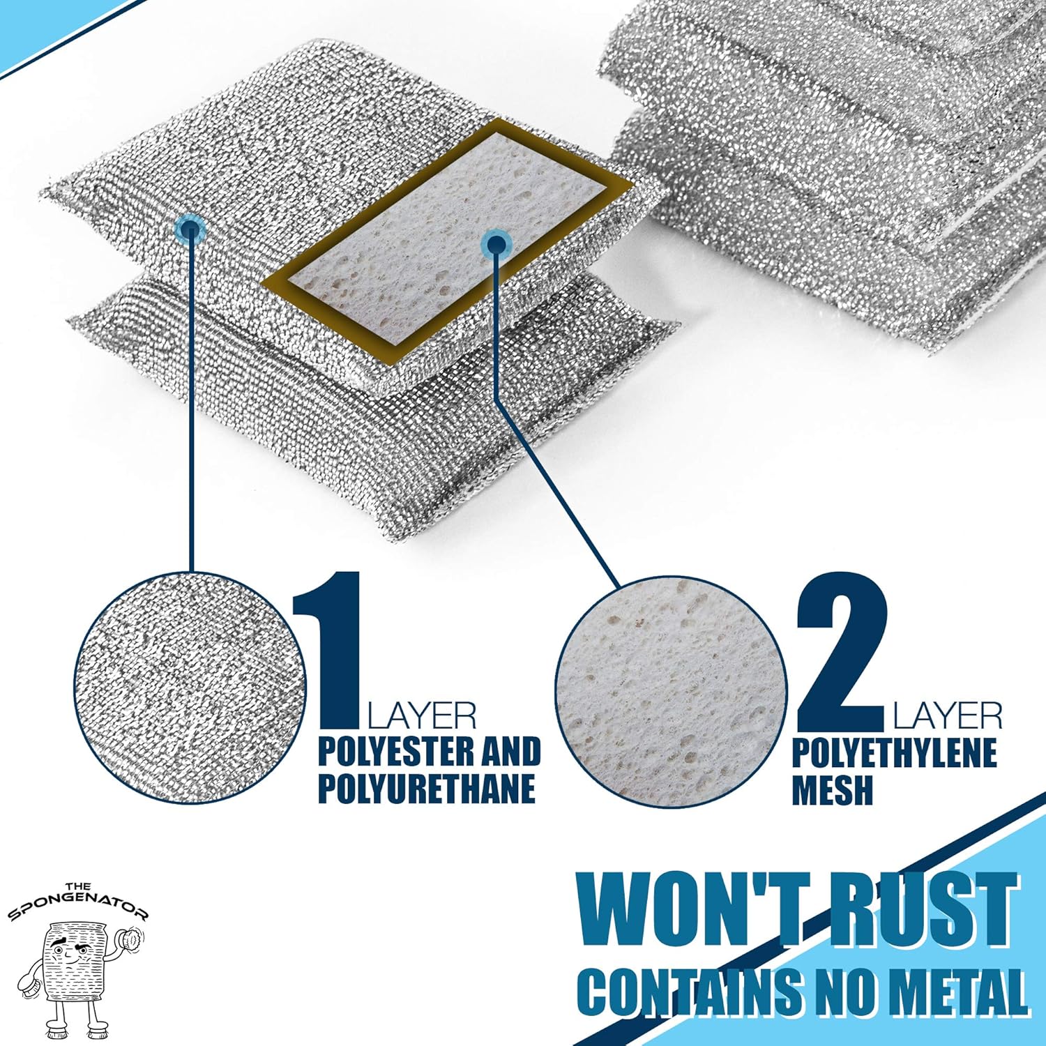 - DURABLE LONG LASTING MATERIALS: Unlike metal scrub sponges that rust easily, these polyester and polyurethane cleaner sponges will stain in excellent condition for up to 3 months (500 uses). Each set includes 6 scrubber pads in silver and gold, so you wonโt have to buy a new pack anytime soon!