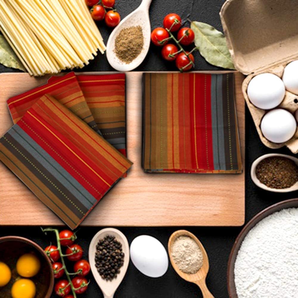 Urban Villa Kitchen Towels Cuisine Stripes Premium Quality 100% Cotton Dish Towels Mitered Corners Ultra Soft (Size: 20X30 Inch) Red Multi Highly Absorbent Bar Towels & Tea Towels - (Set of 6)