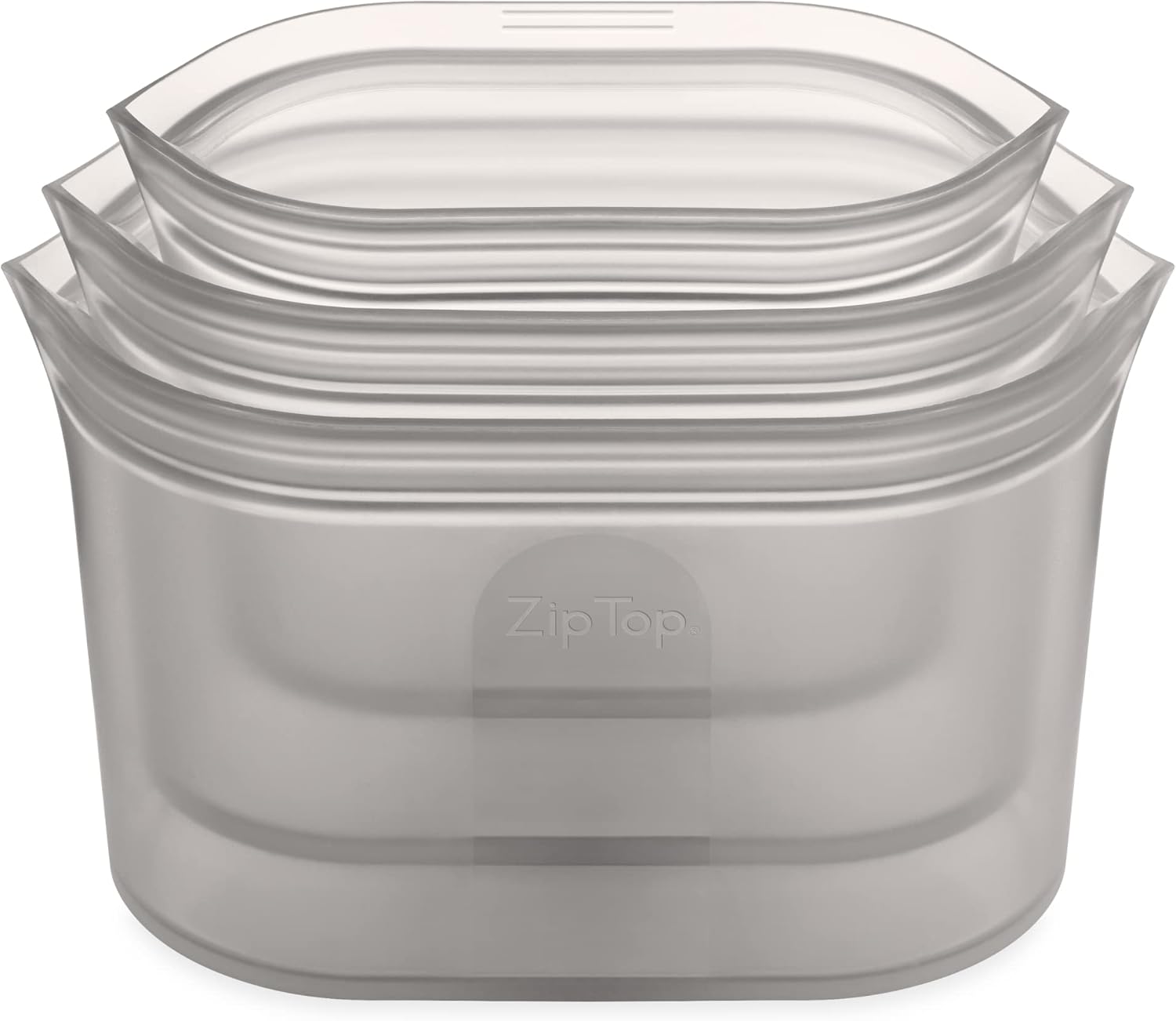 Zip Top Reusable Food Storage Bags | 3 Dish Set [Gray] | Silicone Meal Prep Container | Microwave, Dishwasher and Freezer Safe | Made in the USA