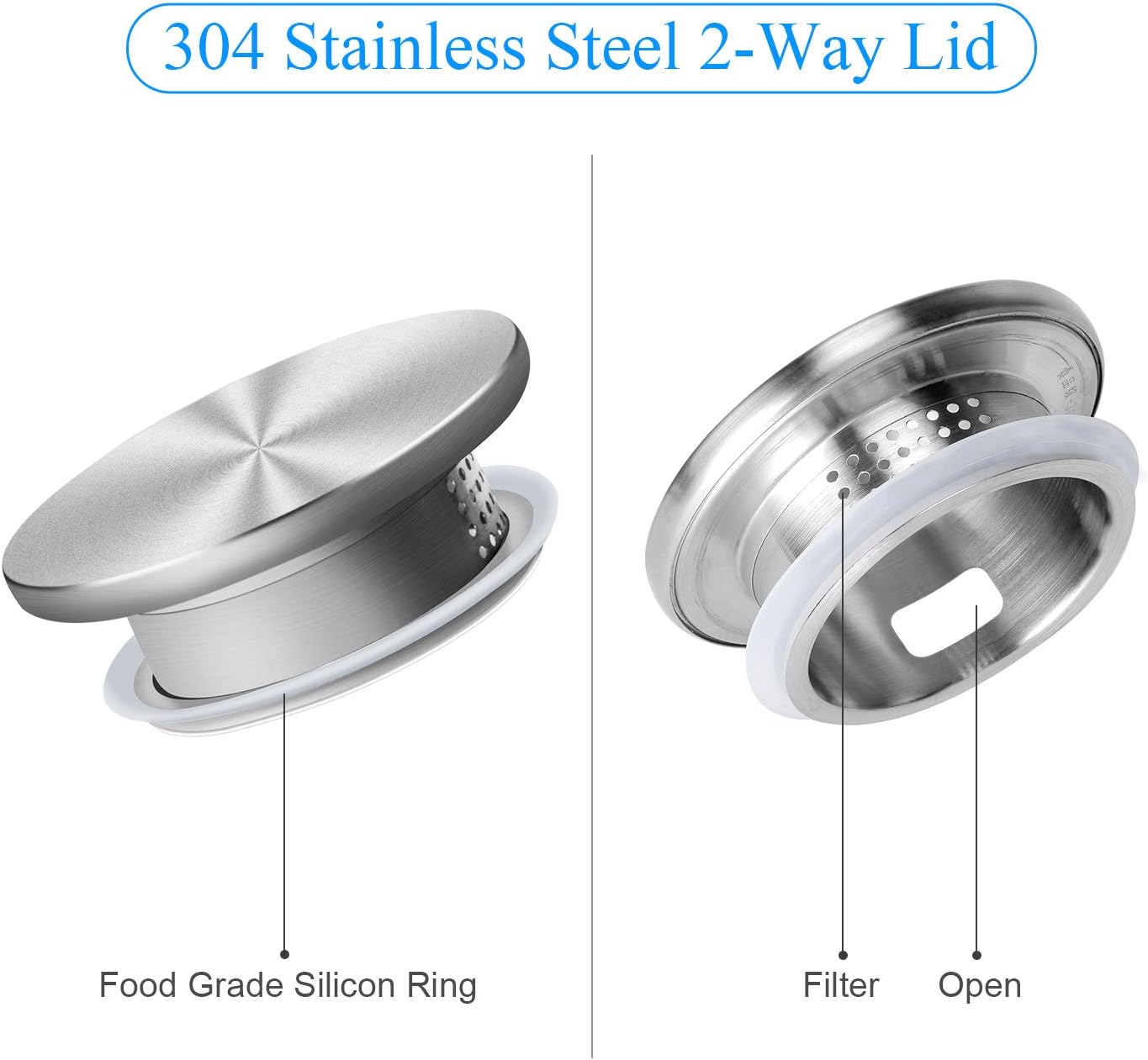 - Functional rust-proof stainless-steel lid: 304 stainless steel lid features 2-way outlets with large holes and small holes for filtration. Itβs quite multi-functional for family use. The food-grade rubber ring makes sure the lid is tight and does not fall off while pouring.