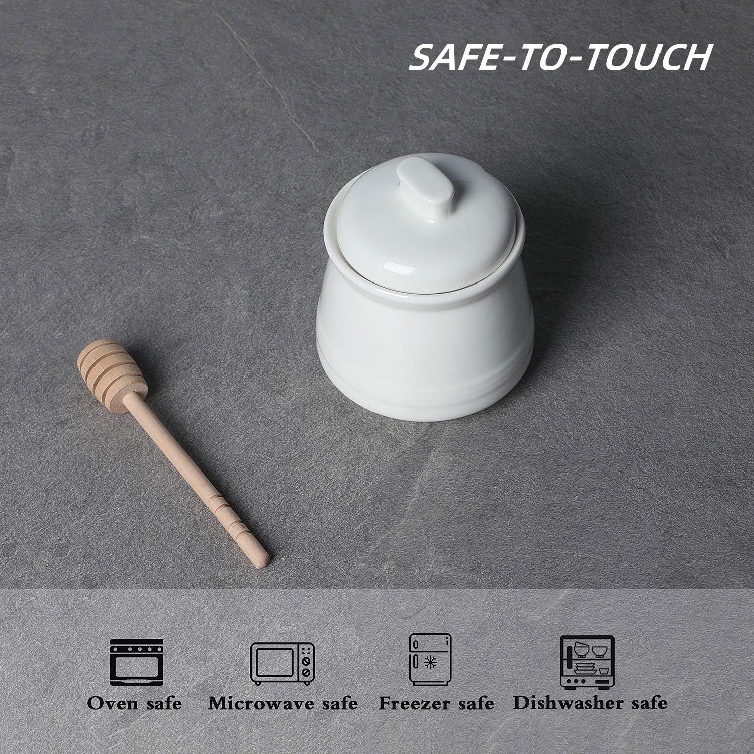 LEETOYI Honey Jar with Lid and Honey Dipper,Ceramic Honey pot,12oz (White)