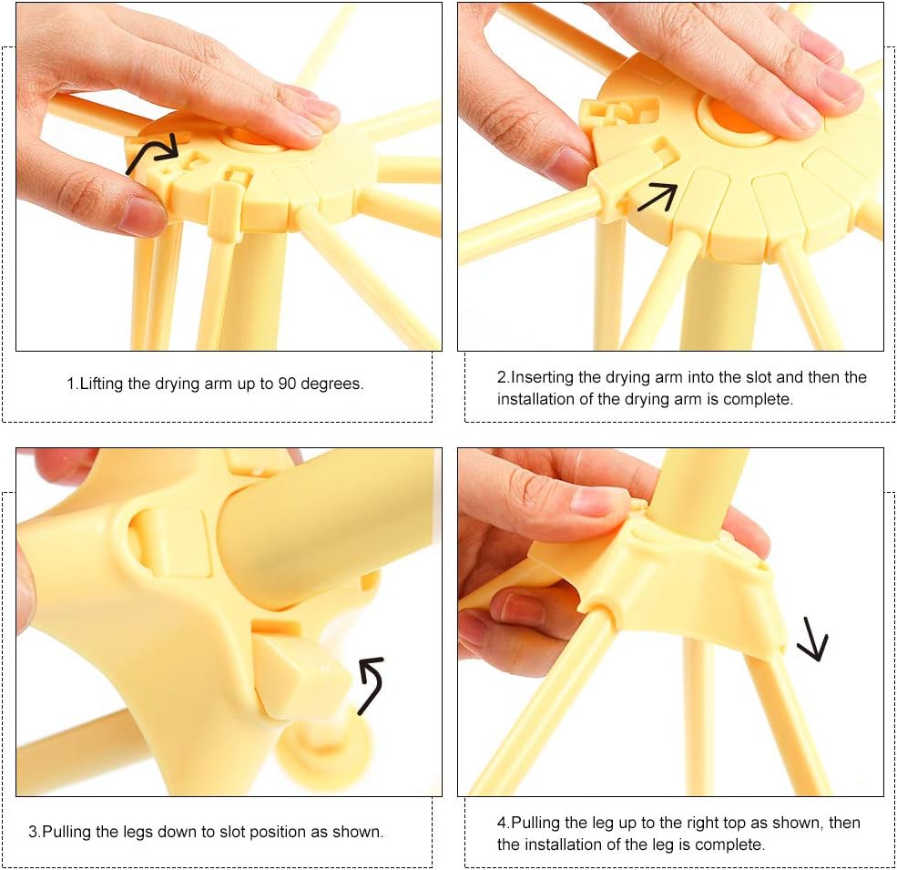 - Perfect Design: 4 rubber feet make the noodle drying rack more stable, and 10 lengthened arms can hang more noodle.No screw and tools needed for assemble and disassemble, just hand adjust, even a child can fit it