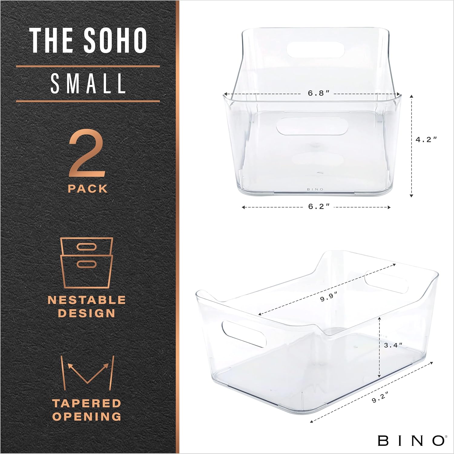 BINO | Plastic Storage Bins, Small - 2 Pack, Clear | THE SOHO COLLECTION | Pantry Organizers and Storage Containers Fridge Organizer Bins Kitchen Cabinet Organizer Medicine Cabinet Bin