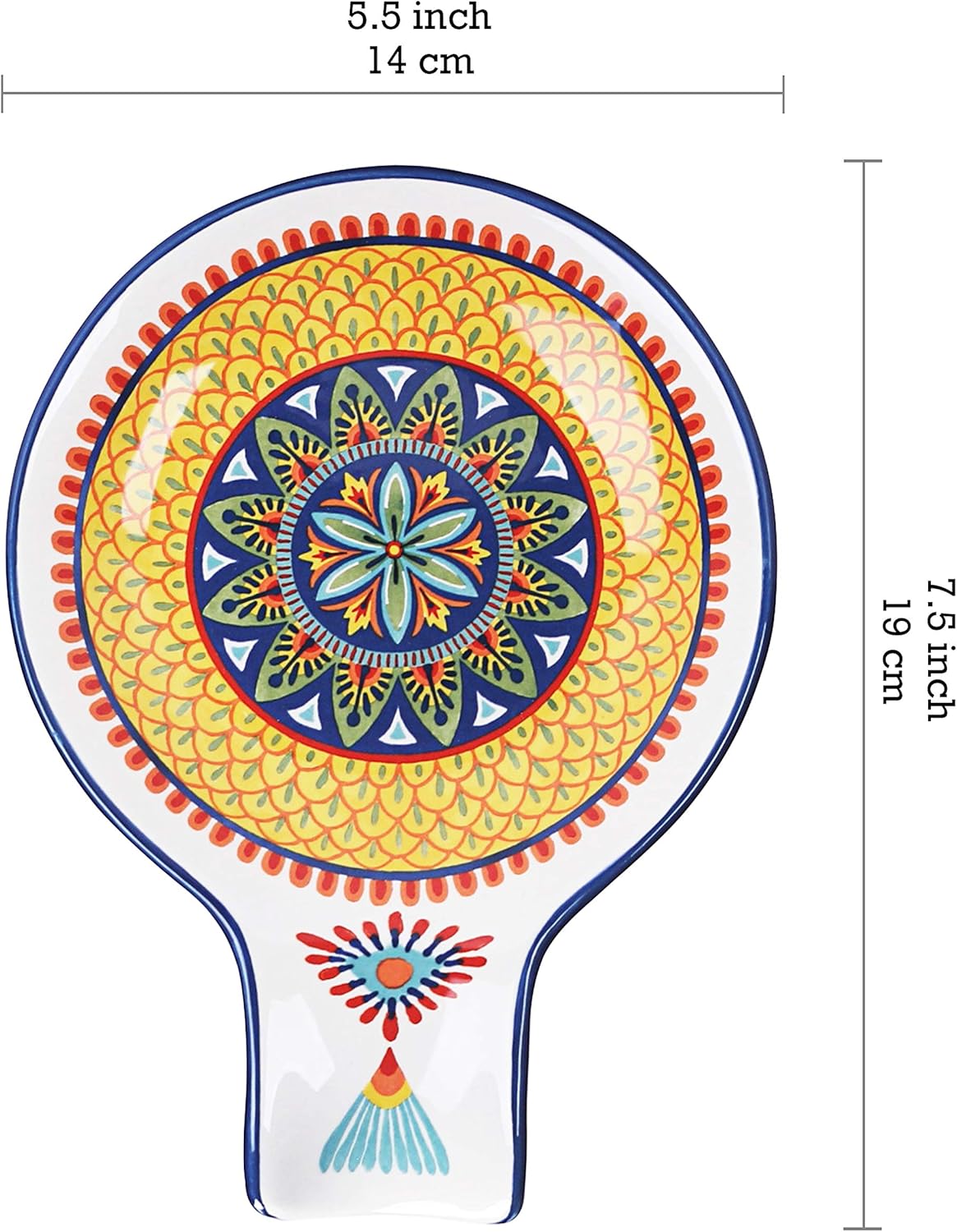 - 【Keep Your Counter Clean】This ceramic spoon rest catches drips and spills from cooking utensils, keeping your kitchen spotless. Perfectly sized (5.5 x 7.5 inches) for spoons, ladles, spatulas, and more. It's great for serving spoons during family meals, or for holding spoons on the coffee counter for stirring your coffee or tea.
