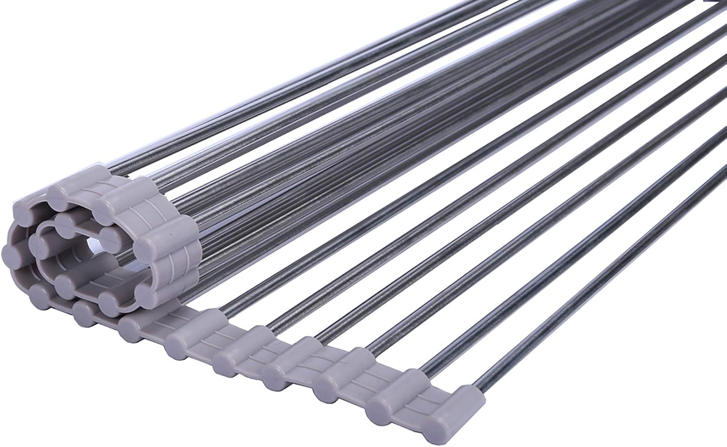 - Newest Displayed Dimension:20.5"(L) x 14"(W) X 0.5'' (H). SUS304 Stainless Still Pipes. Please kindly measure your sink size firstly before purchasing this roll up over the sink dish drying rack! Great Gift for Mother's Day, Father's Day, Christmas Day, New Year, family members and all festivals Gifts