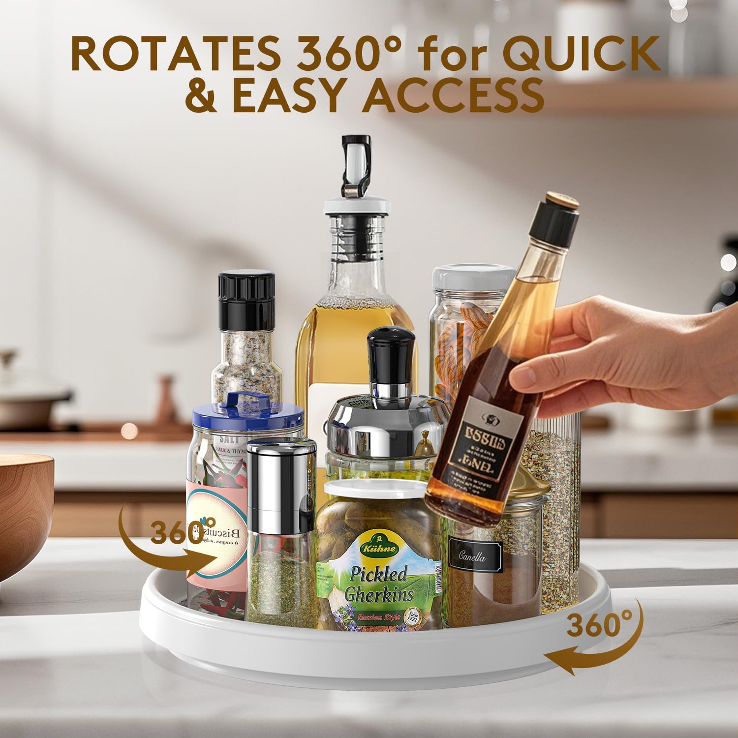 - 360Β° Rotating for Easy Access: Our lazy susan organizer for cabinet with a non-skid durable base, glide easily, quietly and well constructed. Access your frequently-used condiments quickly.It is so convenient for storing daily condiments and items of deep corner cabinet and refrigerator.