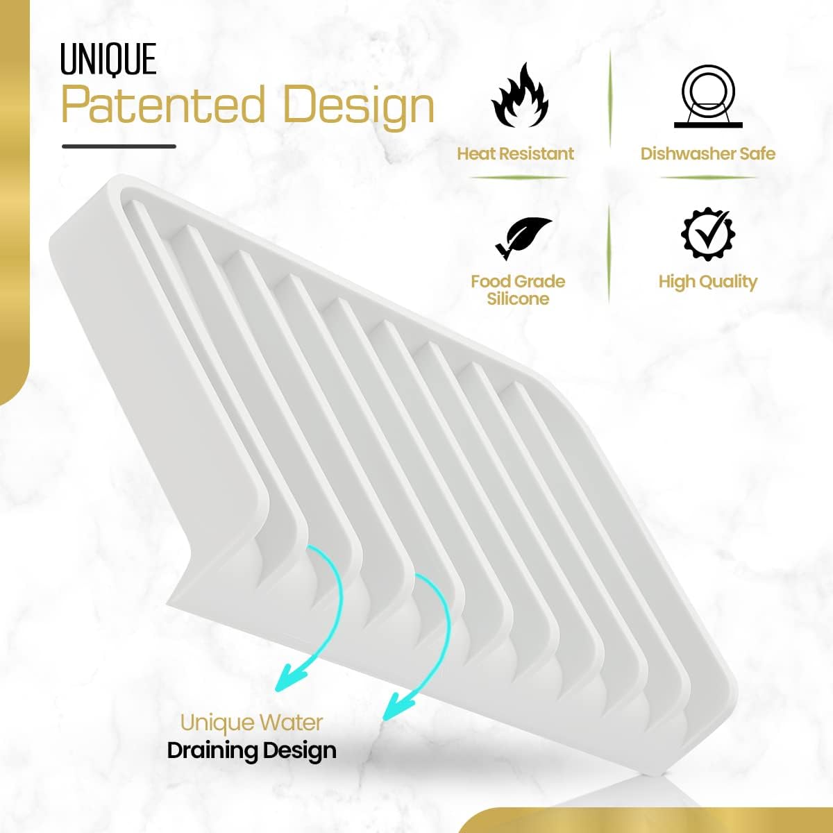 - ✅ FOOD SAFE FLEXIBLE SILICONE AND DESIGNED FOR UNDERMOUNT SINKS: This Kitchen soap tray is made of heat resistant, dishwasher proof (-40°F to 390°F), flexible silicone material which is BPA free. Sponge holder is thick and durable. It can be used as a silicone drying mat for kitchen counter. Dry all your day to day items such as fruits, vegetables, utensils, soap bottles , soap dispenser, sponges, and more. This sink tray comes in 3 great colors Gray, White and Black