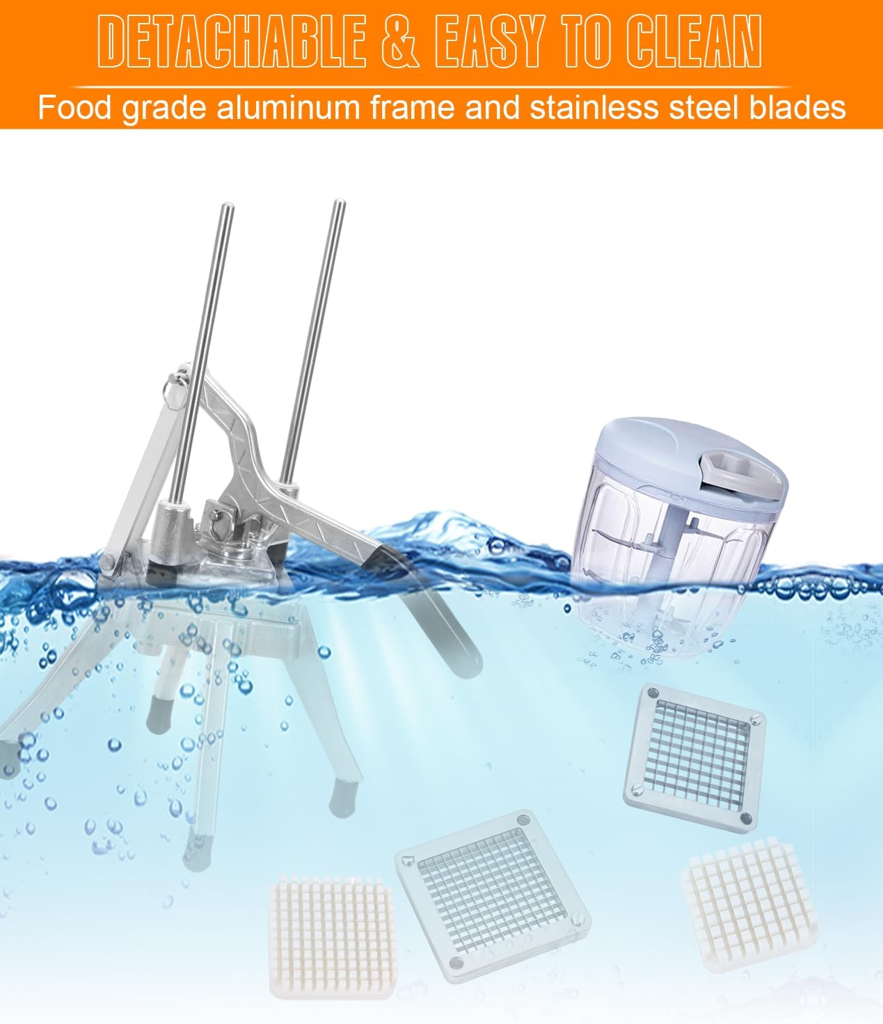 - 【1/4INCH&3/8INCH DOUBLE BLADE】:Precise blade adopts imported stay-sharp food-grade 304 stainless steel. Vegetables and fruits can be chopped into 1/4-inch or 3/8-inch uniform dices in a fraction of the time