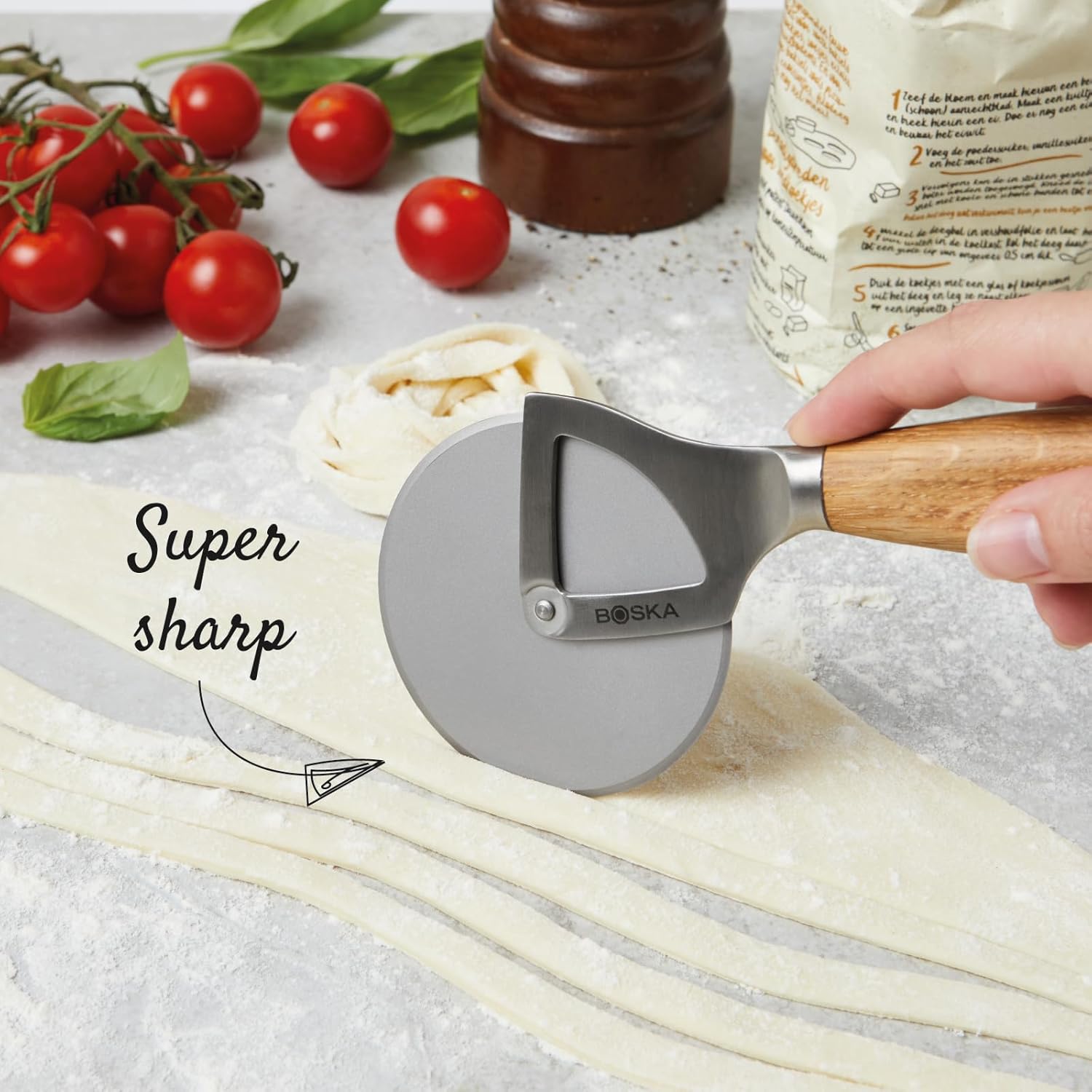 Boska Stainless Steel Pizza Cutter - Oslo Multifunctional Pizza Wheel Cutter - Handheld Food Slicer - Silver Non-Stick Roller - For Kitchen Cooking