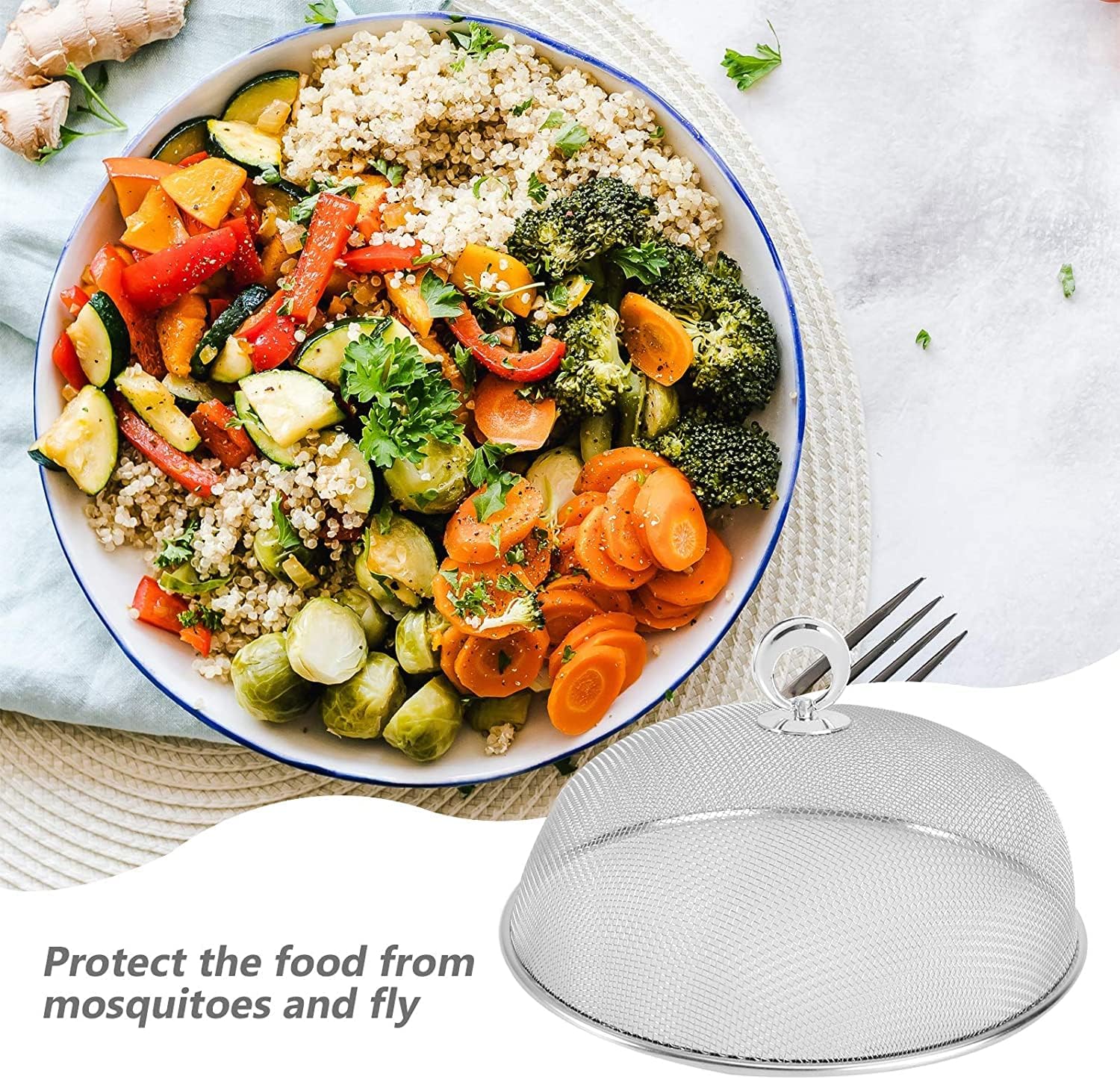 - [MULTI-PURPOSE] --- This metal mesh food cover would protect your food from flies, mosquitoes and falling leafs when you are entertaining outside