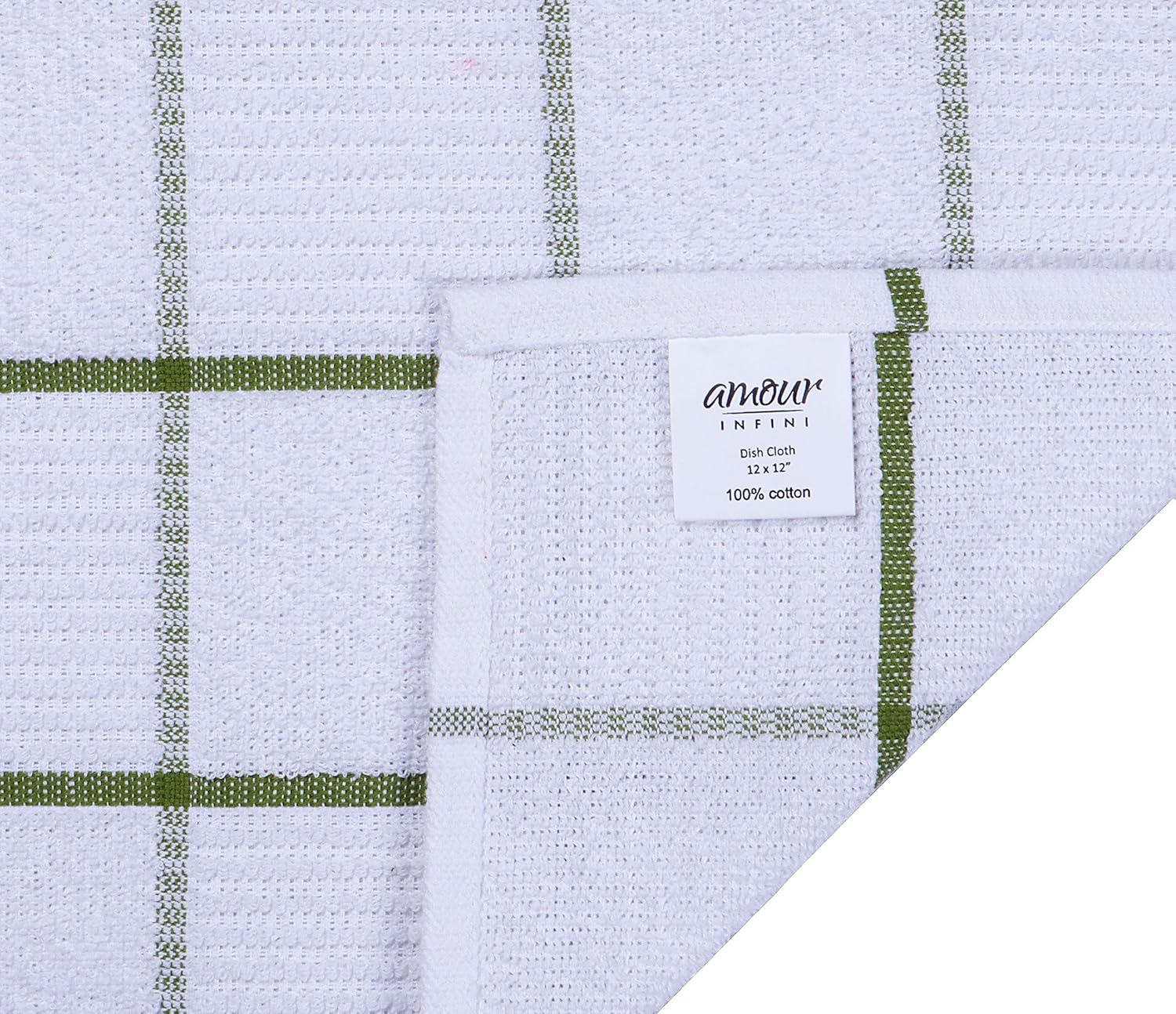 AMOUR INFINI Dish Cloths for Washing Dishes Set of 8 - Highly Absorbent, Super Soft Kitchen Dishcloths - Reusable Quick Dry Dish Rags for Cleaning & Drying Kitchen Linens (12x12 Inch - Green)