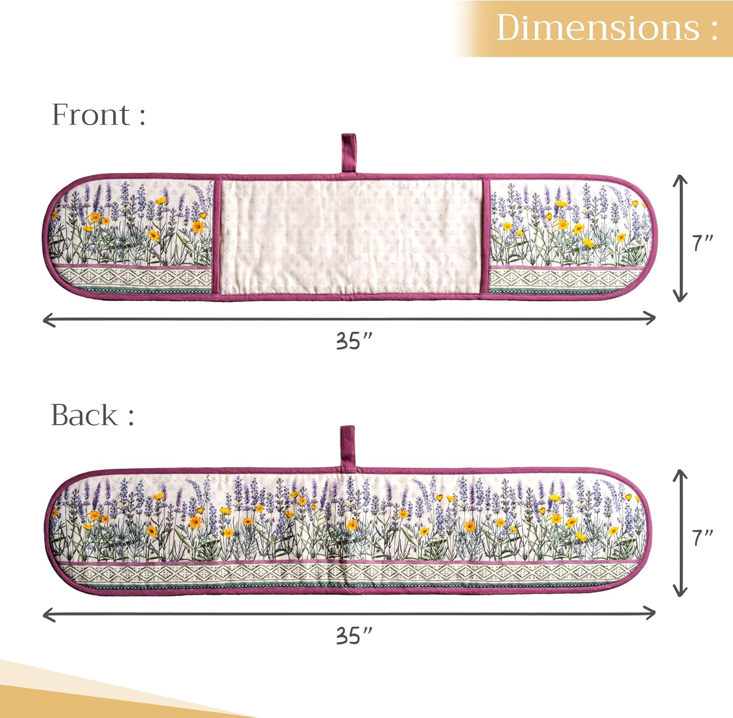 Maison d' Hermine Double Oven Mitts 100% Cotton 7"x35" Double Oven Mitt Heat Resistant BBQ Cooking Gloves with Loop, Baking, Grilling, Home, Kitchen, Handling Hot Pans Spring Summer (Fanny Lavender)