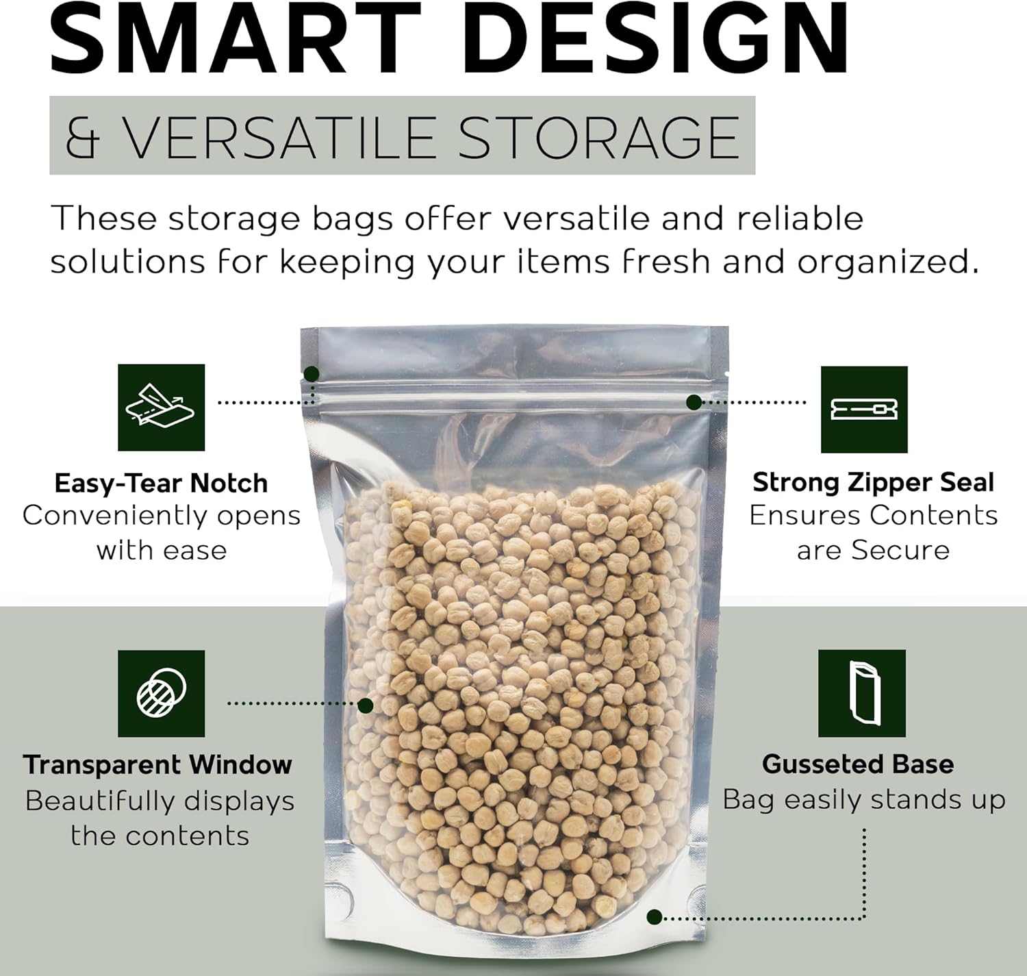 150 Resealable Food Storage Bags, 6x9-inch Heat Sealable Air Tight Bags, Stand Up Zip Bags, Waterproof Packaging Barrier