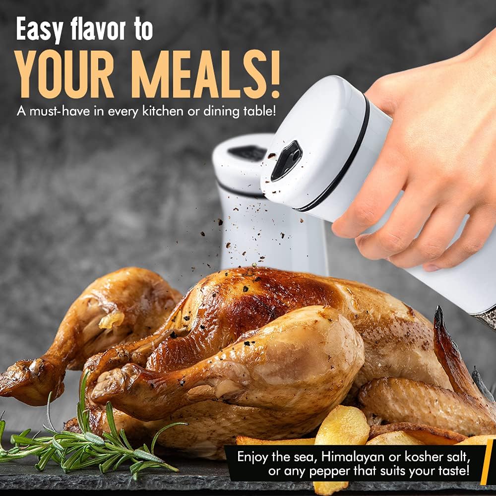 - SET OF 2 SHAKERS: This salt-and-pepper set has two bottles for a classic salt and pepper set. Fill with salt and pepper and get more shakers for your favorite spices. You can also fill with kosher salt and Himalayan salt.