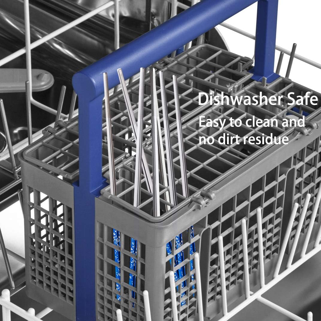 - ✿ 【Elegant Pattern】: The metal chopsticks are made of SUS304 stainless steel with laser engraved flower vine pattern on the titanium plated blue surface. Titanium is an excellent material that is used on premium flatware. It is a permanent plating. No peeling or discoloration after a long time of use. The titanium plating on the stainless steel chopsticks makes the reusable chopsticks sturdier and not easy to scratch. The stainless steel chopsticks are sturdy, reusable, almost indestructible.
