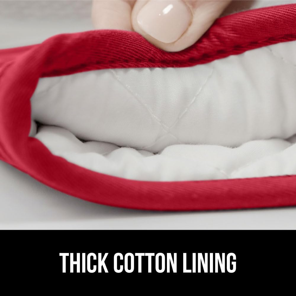GORILLA GRIP BPA-Free Soft Silicone Oven Mitts, 14.5x8.3, Heat Resistant and Waterproof Cooking Gloves, Thick Cotton Lining, Flexible Gripping for Baking Grilling, Kitchen Potholders Set of 2, Red