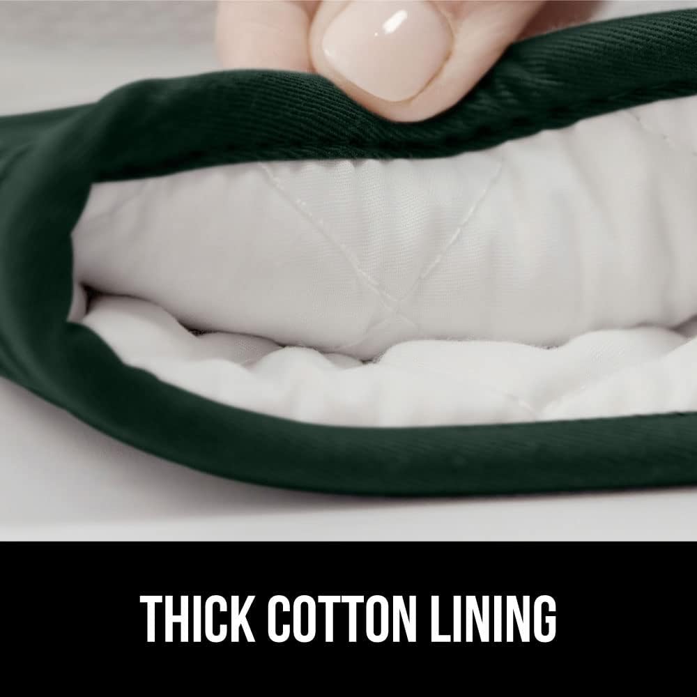 GORILLA GRIP BPA-Free Soft Silicone Oven Mitts, 14.5x8.3, Heat Resistant and Waterproof Cooking Gloves, Thick Cotton Lining, Flexible Gripping for Baking Grilling, Kitchen Potholders Set, Hunter Green