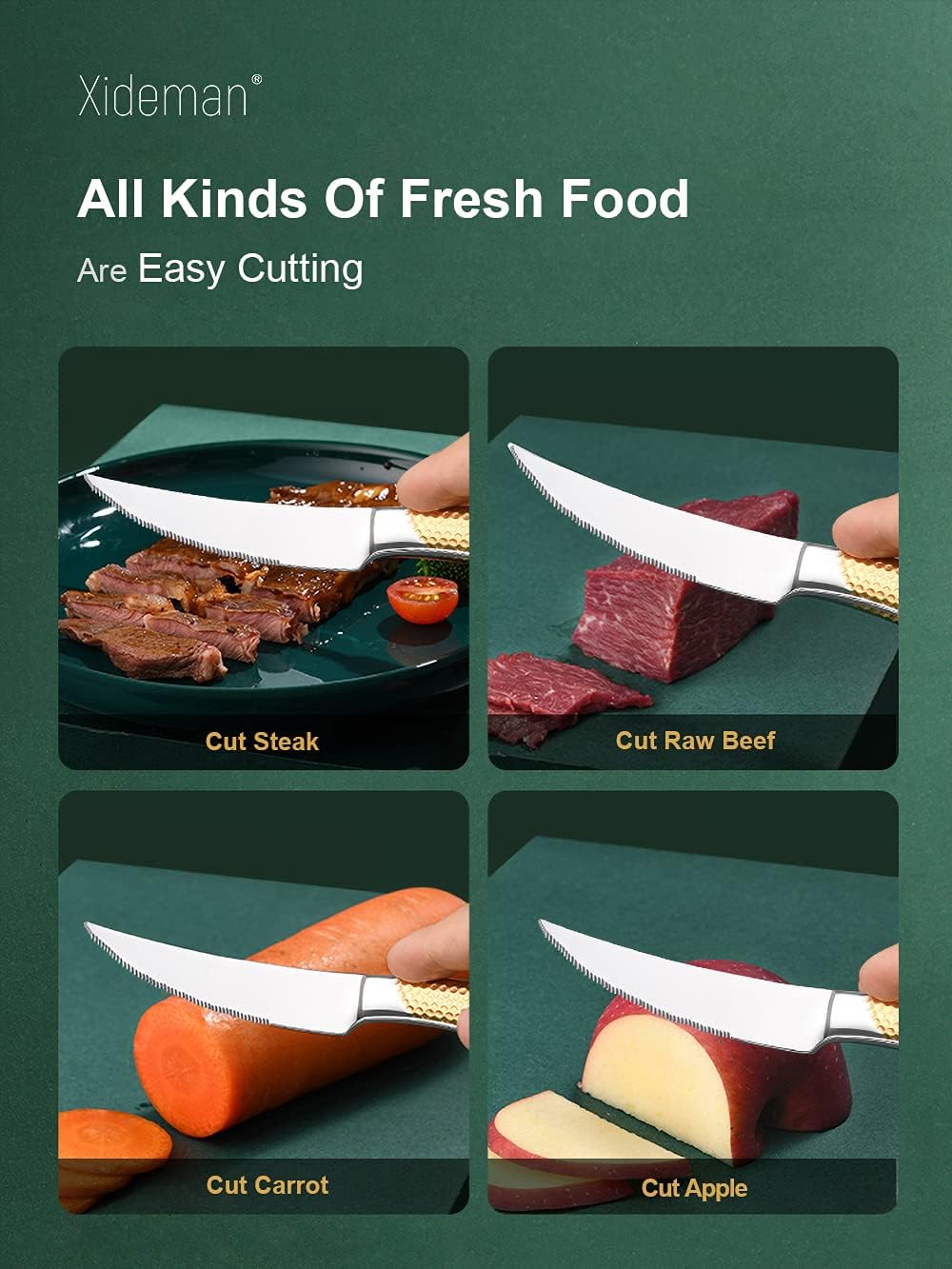 - ALL CAN EASILY CUT: The new two-in-one super sharp serrated knife, double-layer serrated structure, combined with a variety of blades for innovative design. Whether fruit, vegetables, steak or dinner, All CAN EASILY CUT
